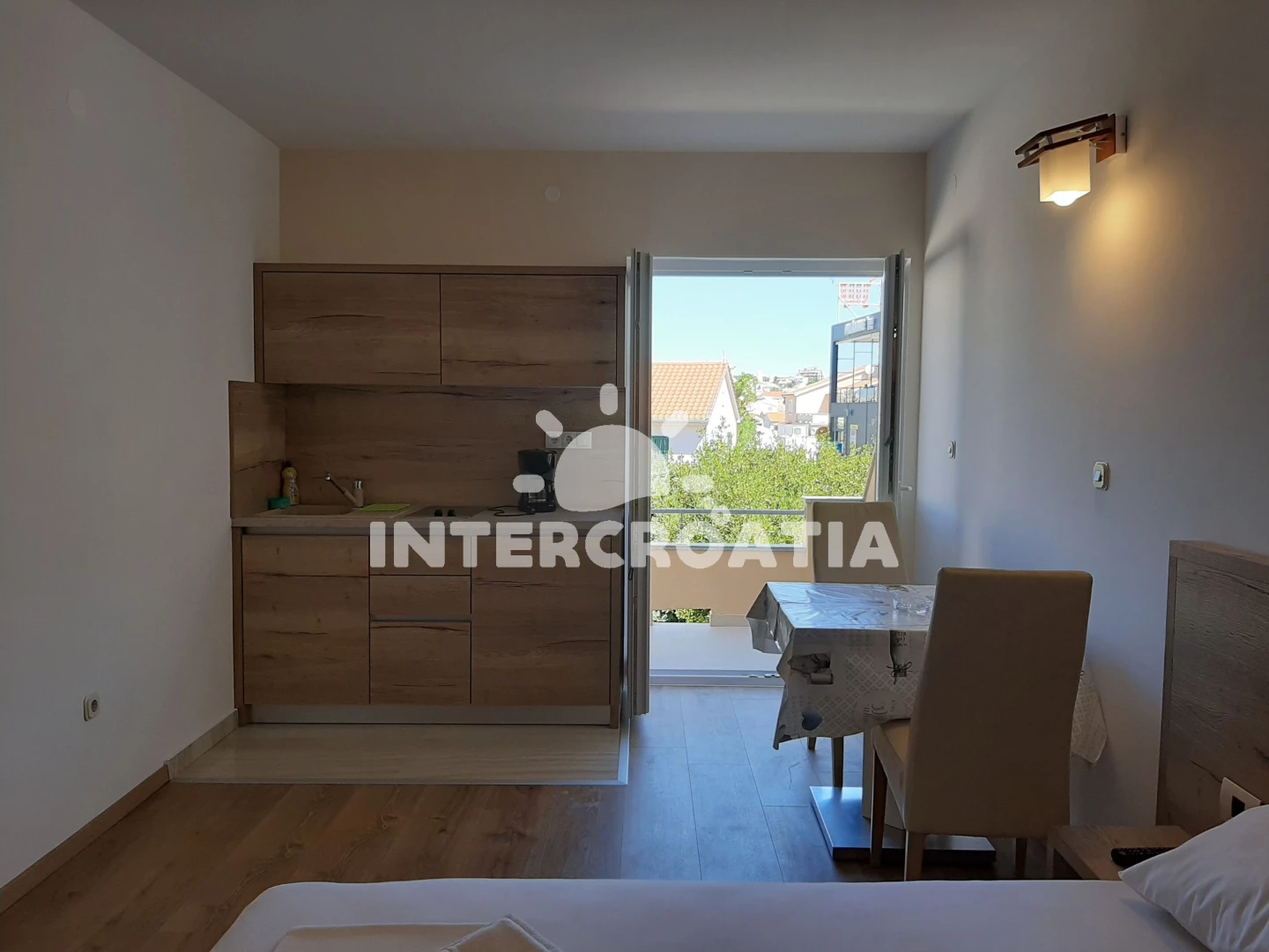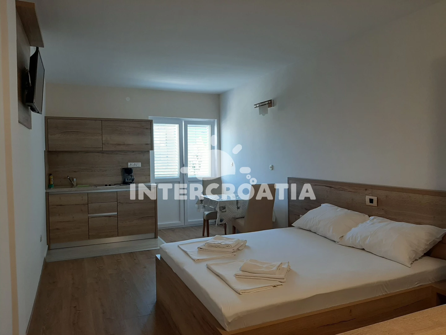 Apartmán typu studio (25 m2) s balkonem. Nachází se v 1. patře objektu. Kuchyňská linka je vybavena varnou deskou, nádobím, lednicí. K dispozici dvoulůžko, televize. Koupelna se sprchovým koutem, umyvadlem, WC.