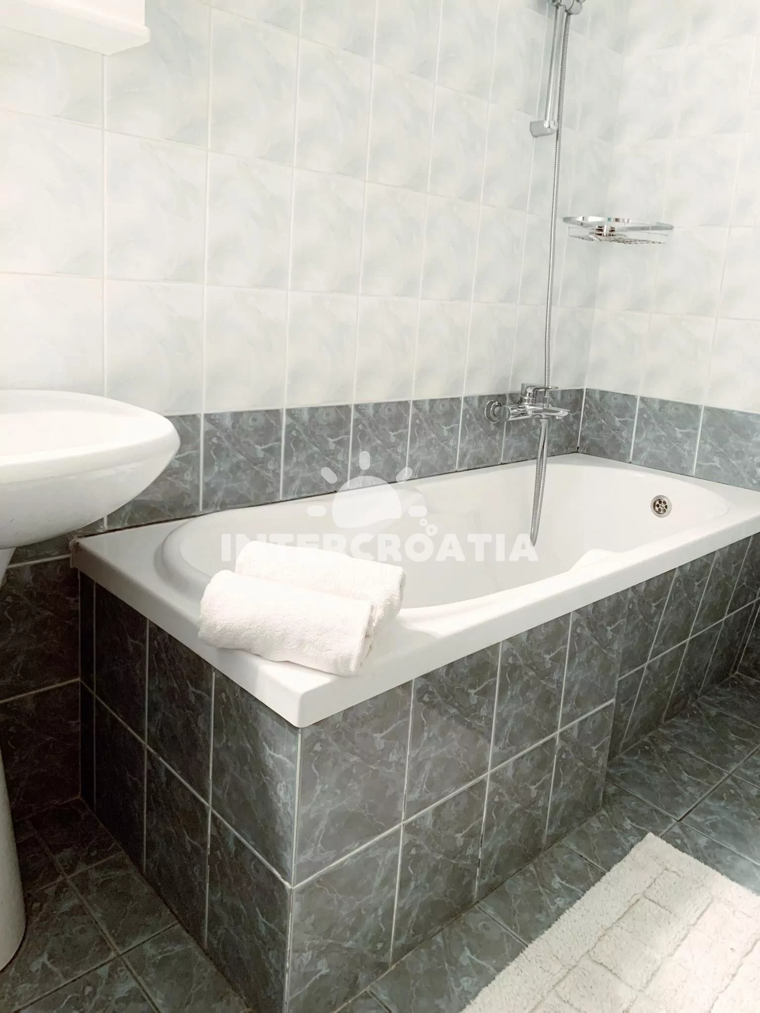 Apartmán (70 m2) s terasou a venkovním posezením se nachází v přízemí domu. Apartmán má 2 ložnice a je vhodný pro 4 osoby. Obývací pokoj je spojený s kuchyní. Kuchyňská linka je vybavena…