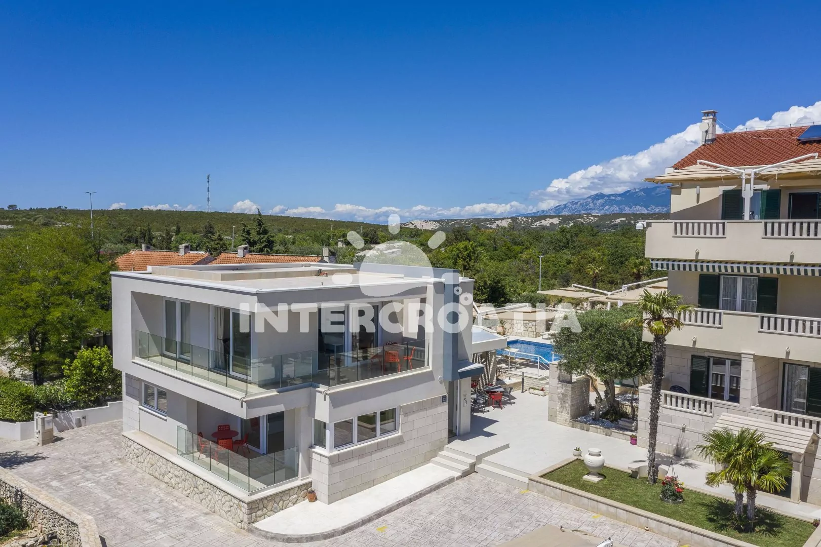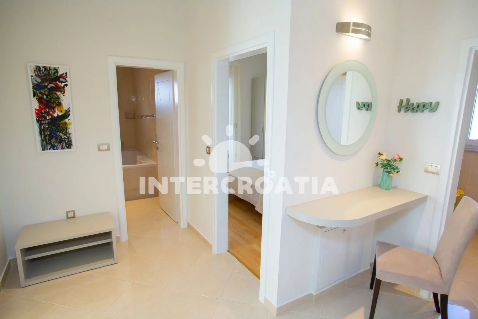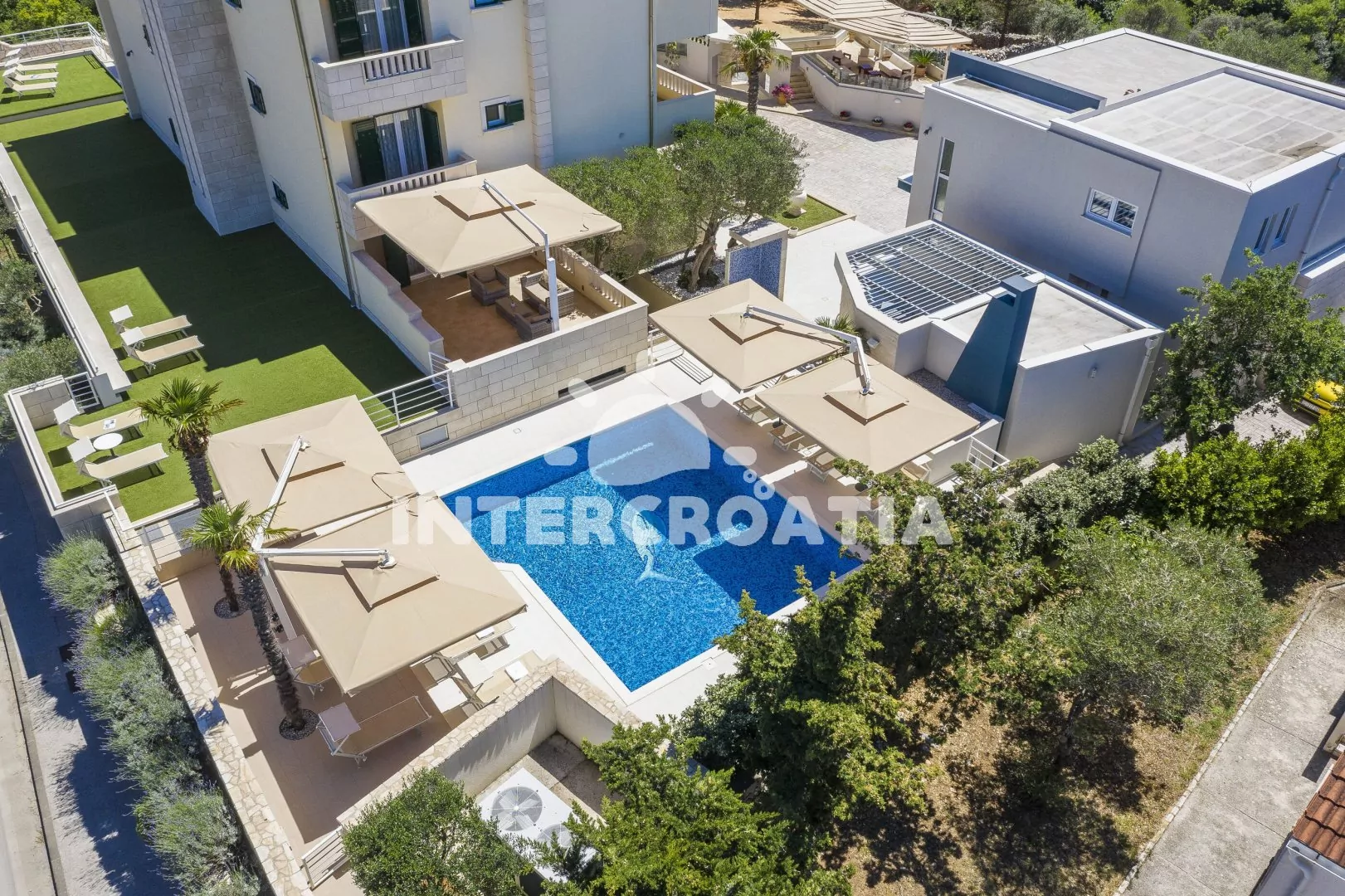Moderní třípatrová apartmánová vila s terasou, bazénem a krásným výhledem na moře.