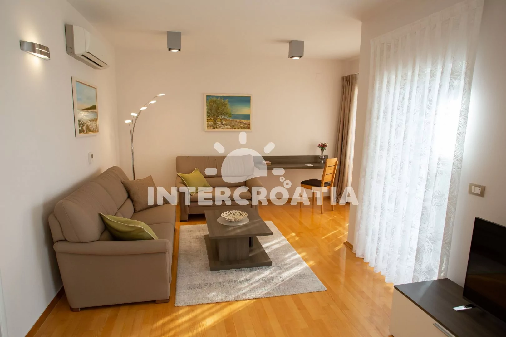 Luxusně zařízený dvoupokojový apartmán s terasou s posezením, nacházející se v 1. patře domu. Obývací pokoj s jídelním stolem pro 4 osoby, sedací soupravou (rozložitelná na extra lůžko pro 2 osoby) a…