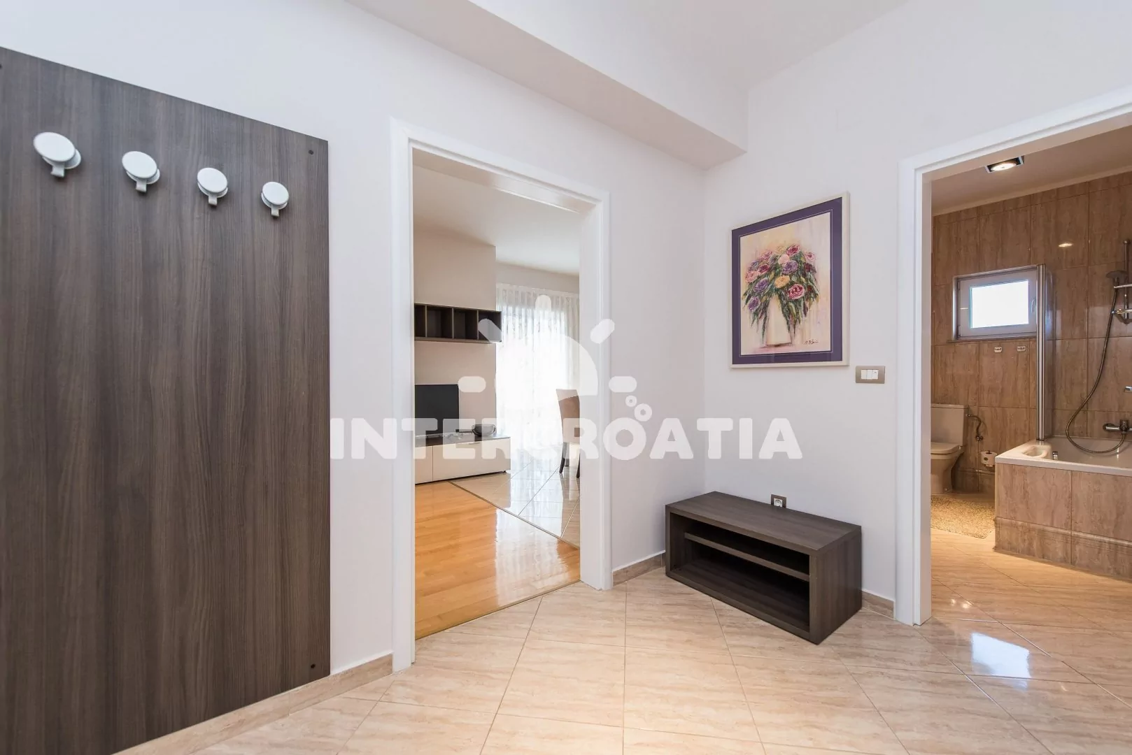 Luxusně zařízený dvoupokojový apartmán s terasou s posezením, nacházející se v 1. patře domu. Obývací pokoj s jídelním stolem pro 4 osoby, sedací soupravou (rozložitelná na extra lůžko pro 2 osoby) a LCD televizí se satelitem. Kuchyňská linka s varnou deskou, troubou, mikrovlnnou troubou, lednicí s mrazákem, nádobím a myčkou na nádobí. Ložnice s dvoulůžkem. Koupelna s vanou, dvěma umyvadly a wc. Druhé samostatné wc. Hosté mají k dispozici terasu s posezením a v zahradě společný bazén a gril. Parkování u objektu.