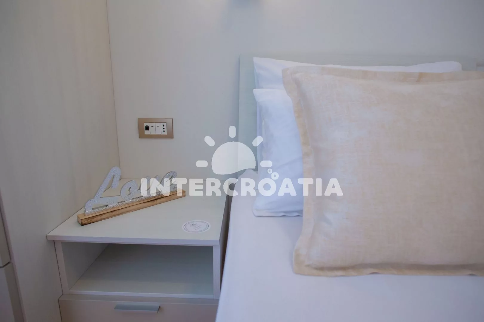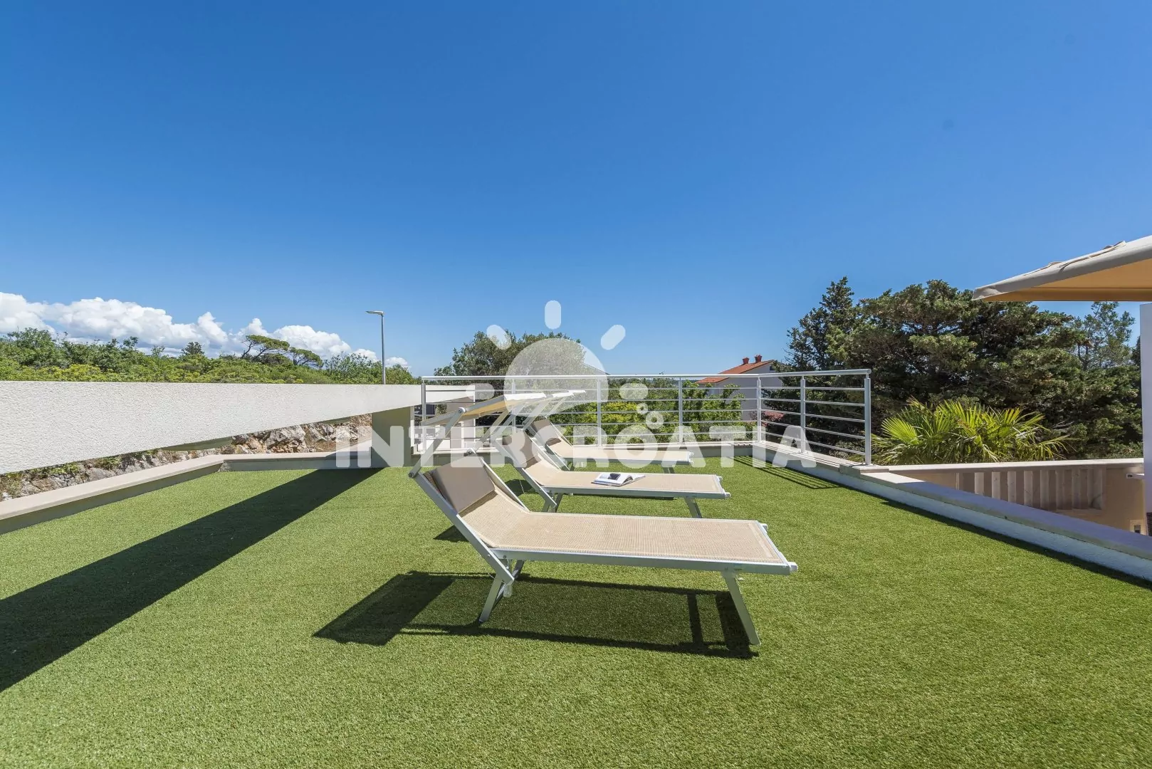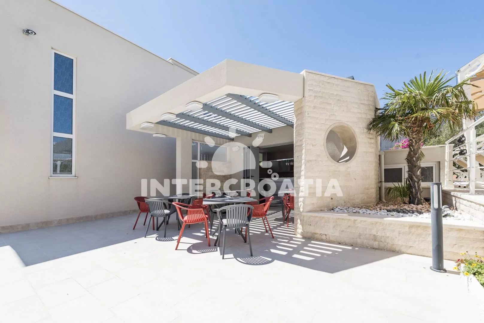 Moderní třípatrová apartmánová vila s terasou, bazénem a krásným výhledem na moře.