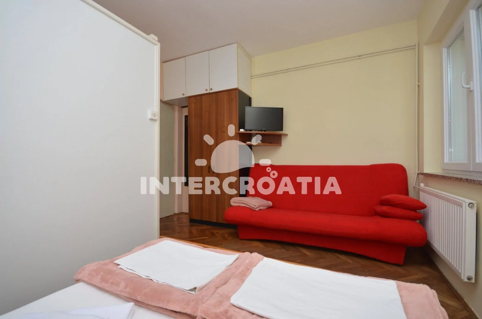 Apartmán (30 m2) typu studio s vlastní terasou a výhledem do zahrady se nachází v přízemí domu. Obývací místnost je spojena s kuchyní. Kuchyňská linka je vybavena dvouplotýnkovým vařičem, rychlovarnou konvicí, kávovarem, nádobím a lednicí s mrazákem. Obývací místnost s pohovkou, televizí se satelitním programem, klimatizací, jedním dvoulůžkem a vstupem na terasu. Koupelna se sprchovým koutem, umyvadlem a wc. Hostům je k dispozici parkování u objektu zdarma.