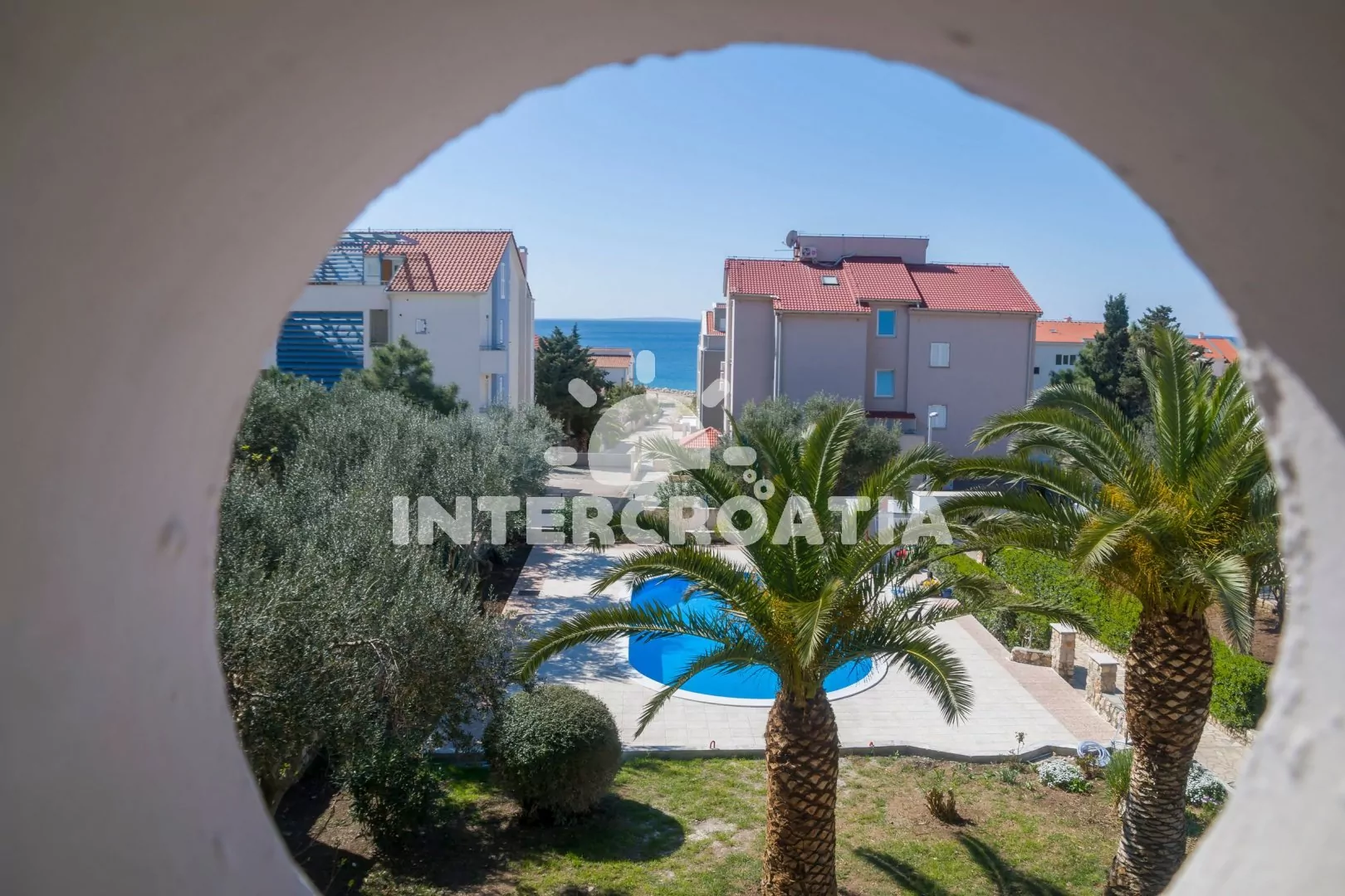 Apartmánová vila s venkovním bazénem a lehátky se nachází jen do 200 m od moře a oblázkové pláže. Vila má oplocený pozemek s okrasnou zahradou, velkou společnou terasou s venkovním posezením a grilem. Apartmány jsou plně vybavené, klimatizované a disponují soukromými lodžiemi. Parkovací místa pro automobily u objektu.