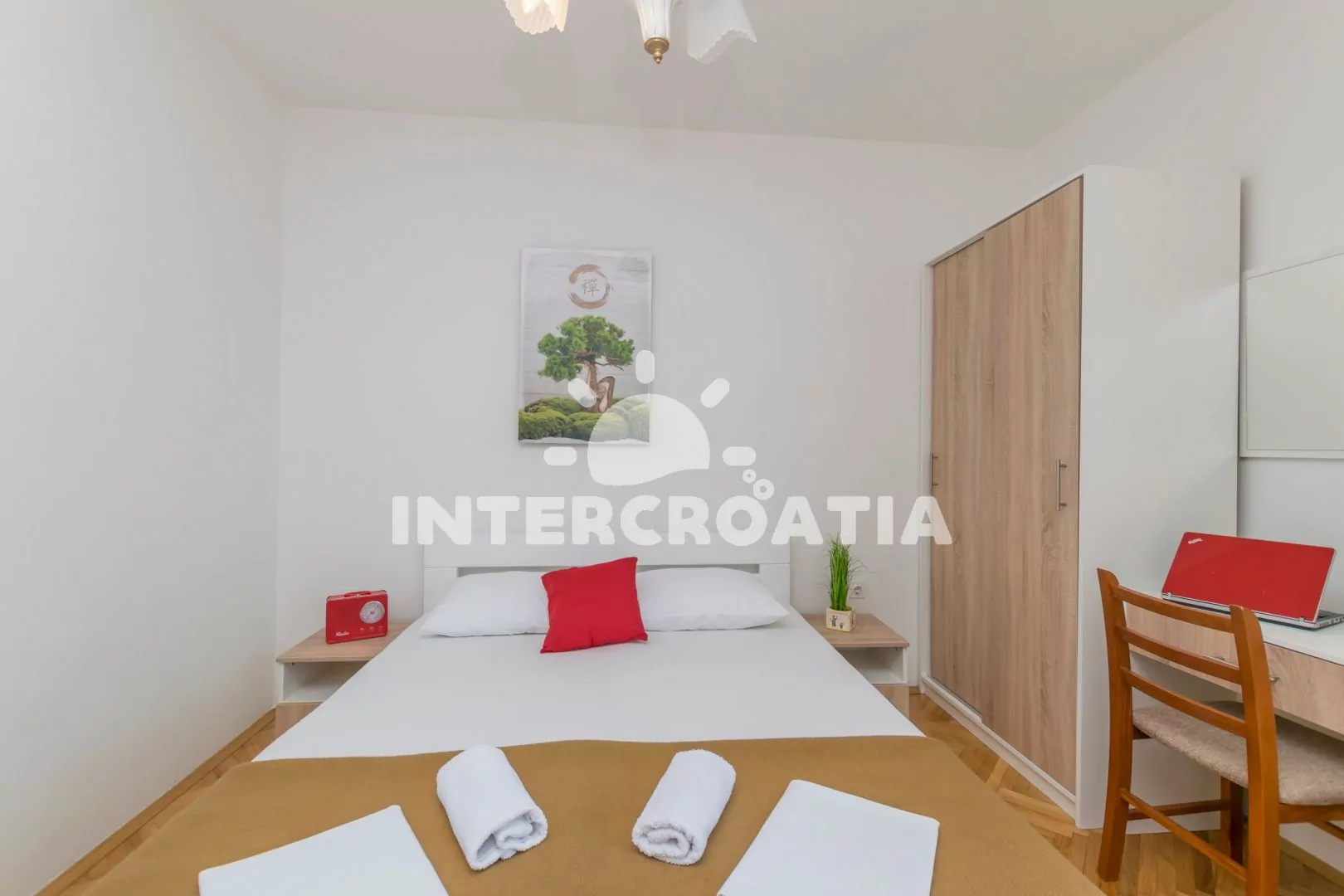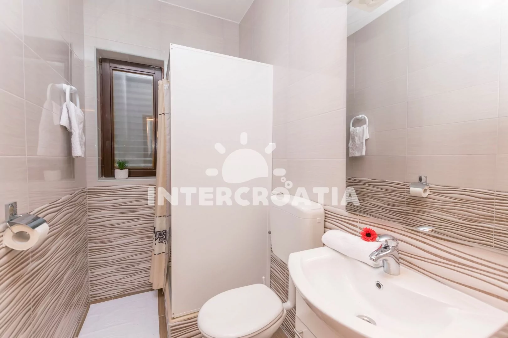 Vzdálenosti: Moře a oblázková pláž 200 m, supermarket, bar, restaurace, veřejná doprava 200 m, centrum, ambulance, lékárna, banka, pošta 1,5 km, trajekt 80 km, letiště 85 km.