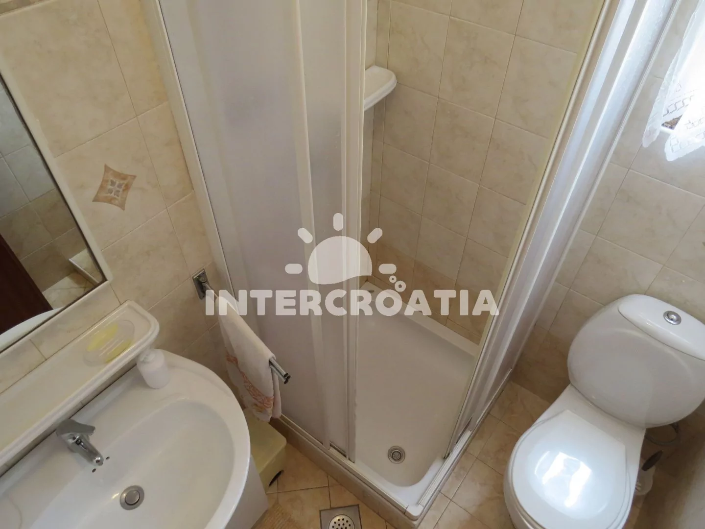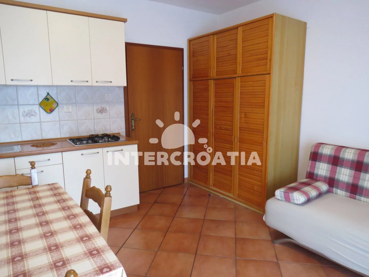 Vzdálenosti: Moře a oblázková pláž 350 m, centrální oblázková pláž 800 m, restaurace, směnárna 100 m, supermarket 150 m, centrum, pošta, banka, bar, veřejná doprava, muzeum 200 m, lékárna, půjčovna cyklistických kol, lékárna 300 m, čerpací stanice, tenis, ambulance 1,2 km, trajekt 8 km, letiště 80 km.