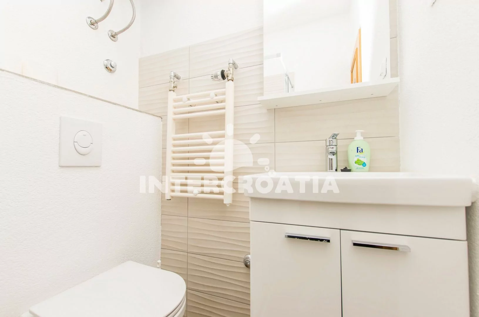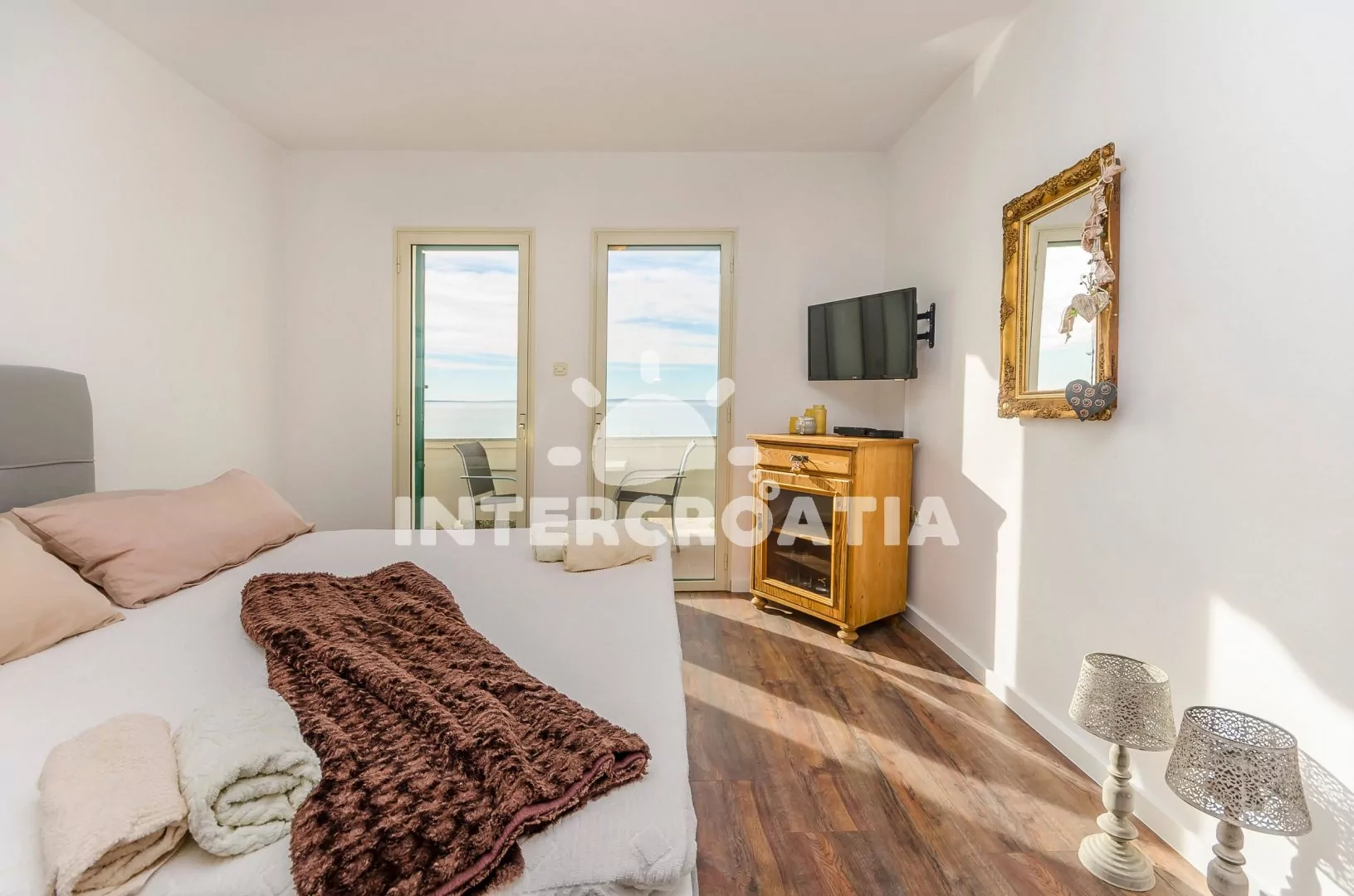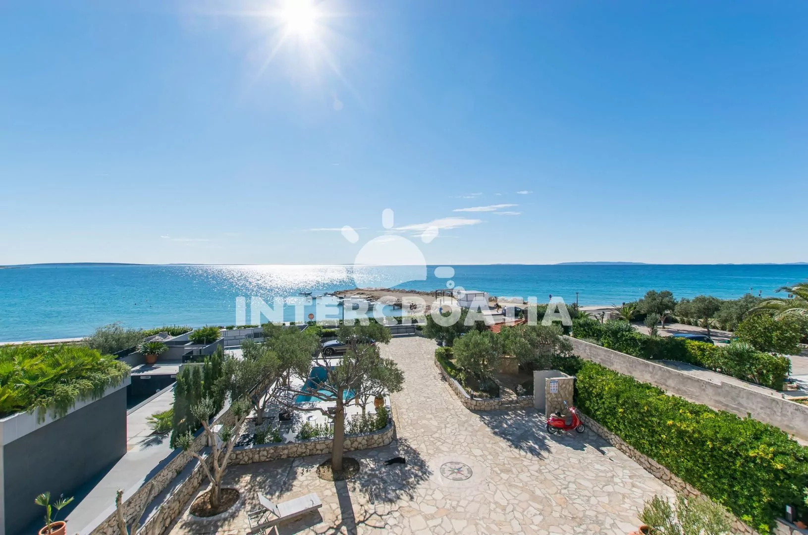Skvěle umístěná apartmánová vila s venkovním bazénem se nachází přímo u moře a oblázkové pláže. Vila stojí samostatně na oploceném pozemku se zahradou, pergolou s terasou, posezením a zděným grilem. Apartmány jsou moderně zařízené, klimatizované a disponují soukromými lodžiemi s venkovním posezením. Parkovací místa pro automobily jsou k dispozici na pozemku vily za plotem. Dále je možnost v objektu si vypůjčit 3 společná jízdní kola.