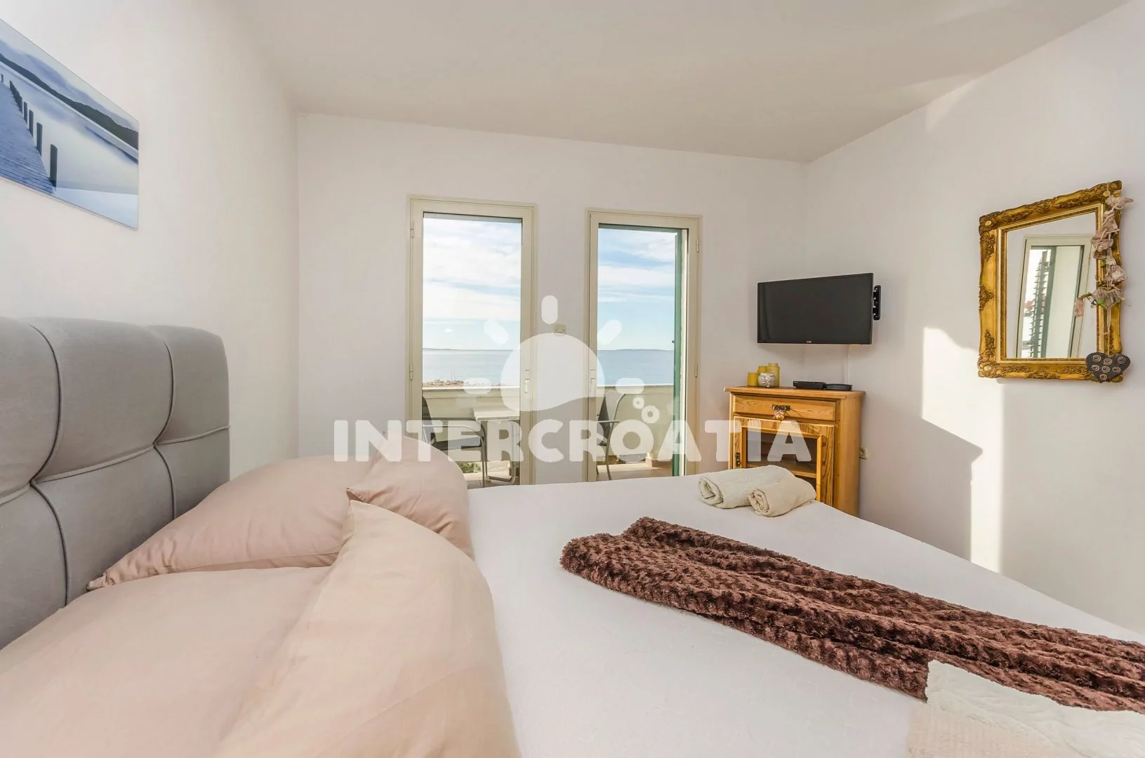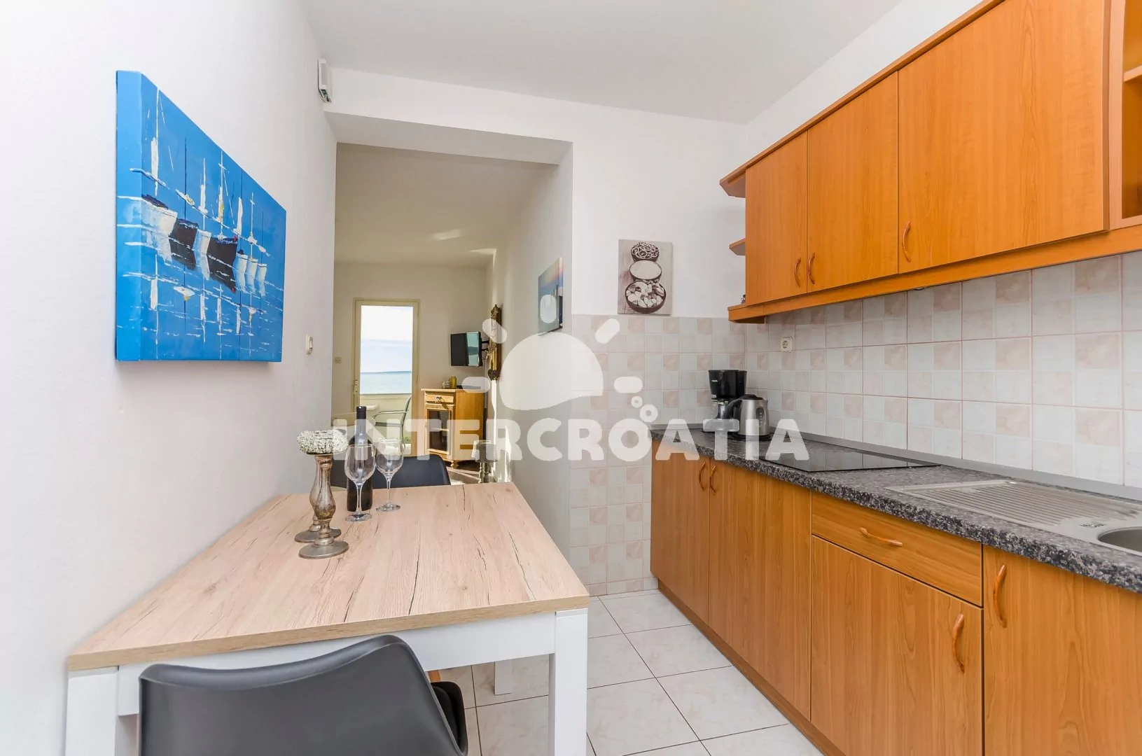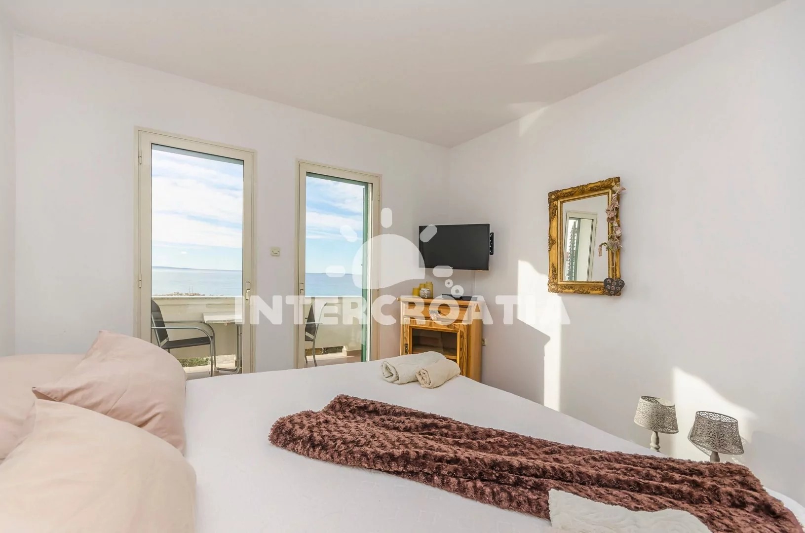 Vzdálenosti: Moře a oblázková pláž 20 m, supermarket 10 m, restaurace, bar 500 m, centrum, banka, pošta 1 km, trajekt, letiště 80 km.