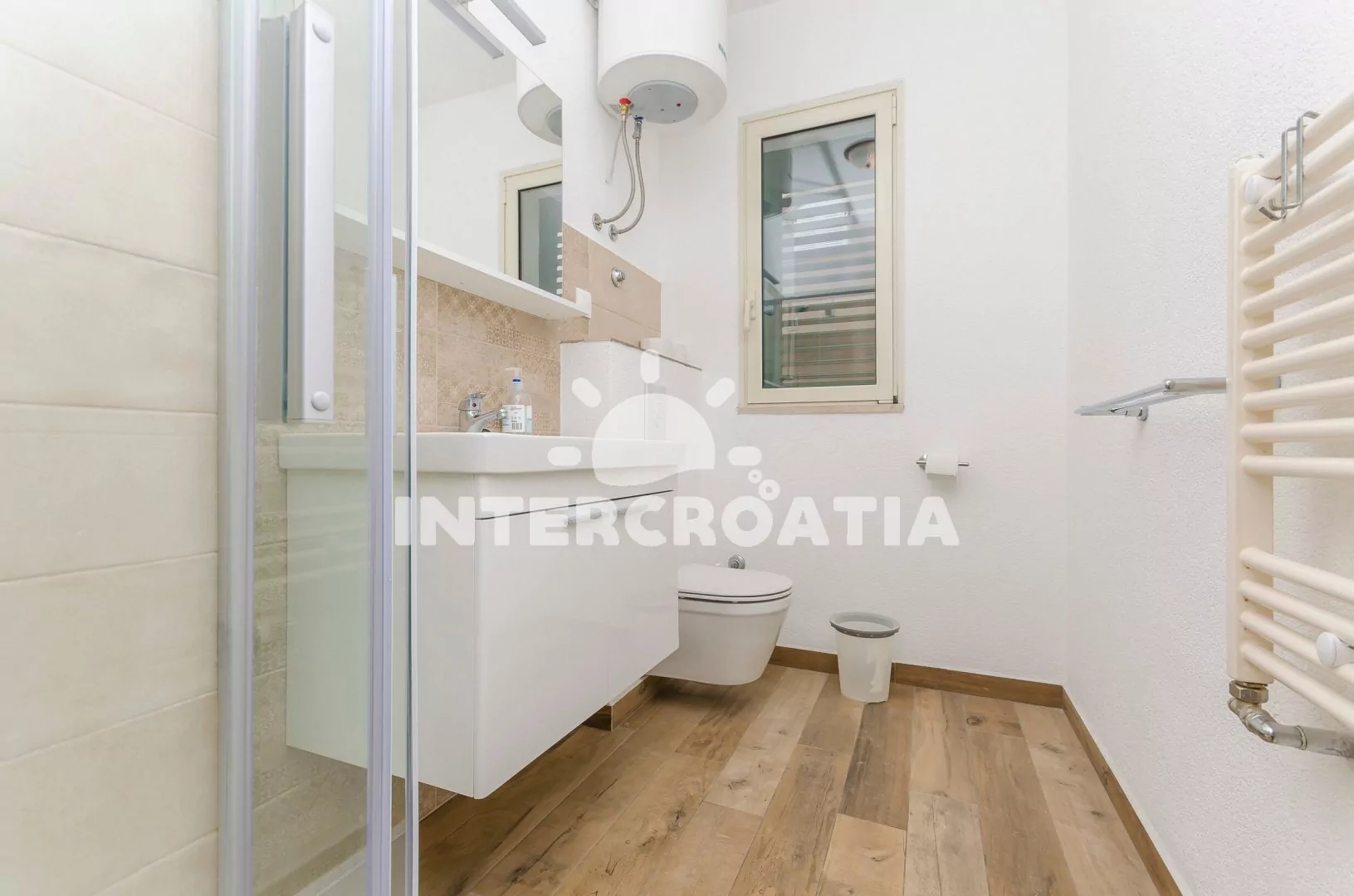 Výborně umístěná apartmánová vila s venkovním bazénem se nachází přímo u moře a oblázkové pláže. Vila stojí samostatně na oploceném pozemku se zahradou, pergolou s terasou, posezením a zděným grilem. Apartmány jsou moderně zařízené, klimatizované a disponují soukromými lodžiemi s venkovním posezením. Parkovací místa pro automobily jsou k dispozici na pozemku vily za plotem. Dále je možnost v objektu si vypůjčit 3 společná jízdní kola.