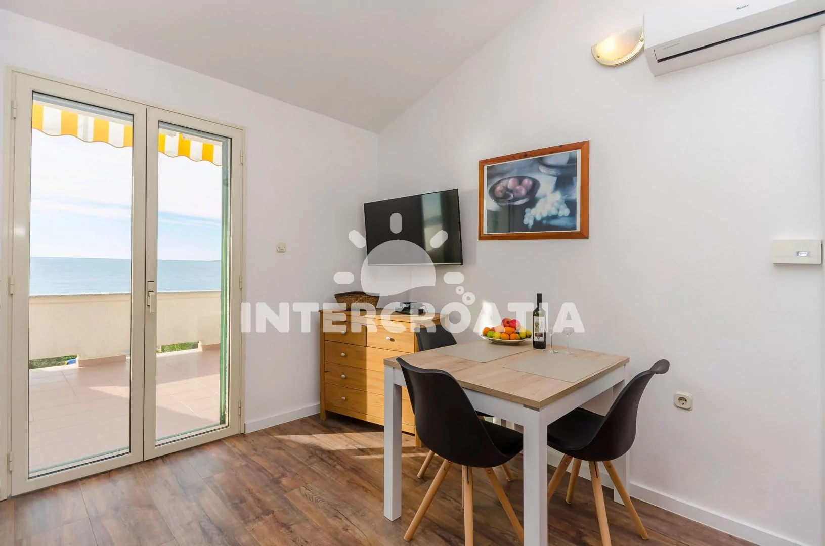 Výborně umístěná apartmánová vila s venkovním bazénem se nachází přímo u moře a oblázkové pláže. Vila stojí samostatně na oploceném pozemku se zahradou, pergolou s terasou, posezením a zděným grilem. Apartmány jsou moderně zařízené, klimatizované a disponují soukromými lodžiemi s venkovním posezením. Parkovací místa pro automobily jsou k dispozici na pozemku vily za plotem. Dále je možnost v objektu si vypůjčit 3 společná jízdní kola.