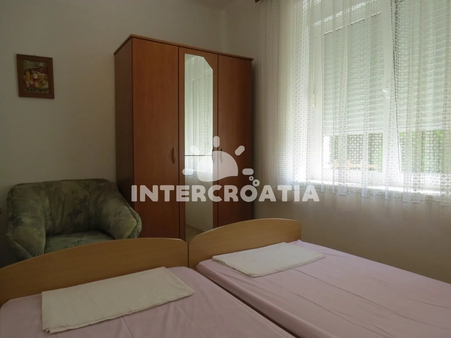 Vzdálenosti: Moře a oblázková pláž 170 m, restaurace 20 m, supermarket 30 m, veřejná doprava 900 m, lékárna 50 m, směnárna 30 m, centrum 70 m, bar 50 m, diskotéka 70 m, ambulance 500 m, pošta, muzeum a banka 100 m, čerpací stanice 1 km, potápění, půjčovna cyklistický kol, tenisové kurty a mini golf 1 km, trajekt 8 km, letiště (Zadar) 90 km.