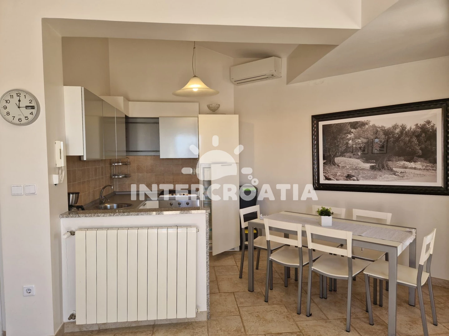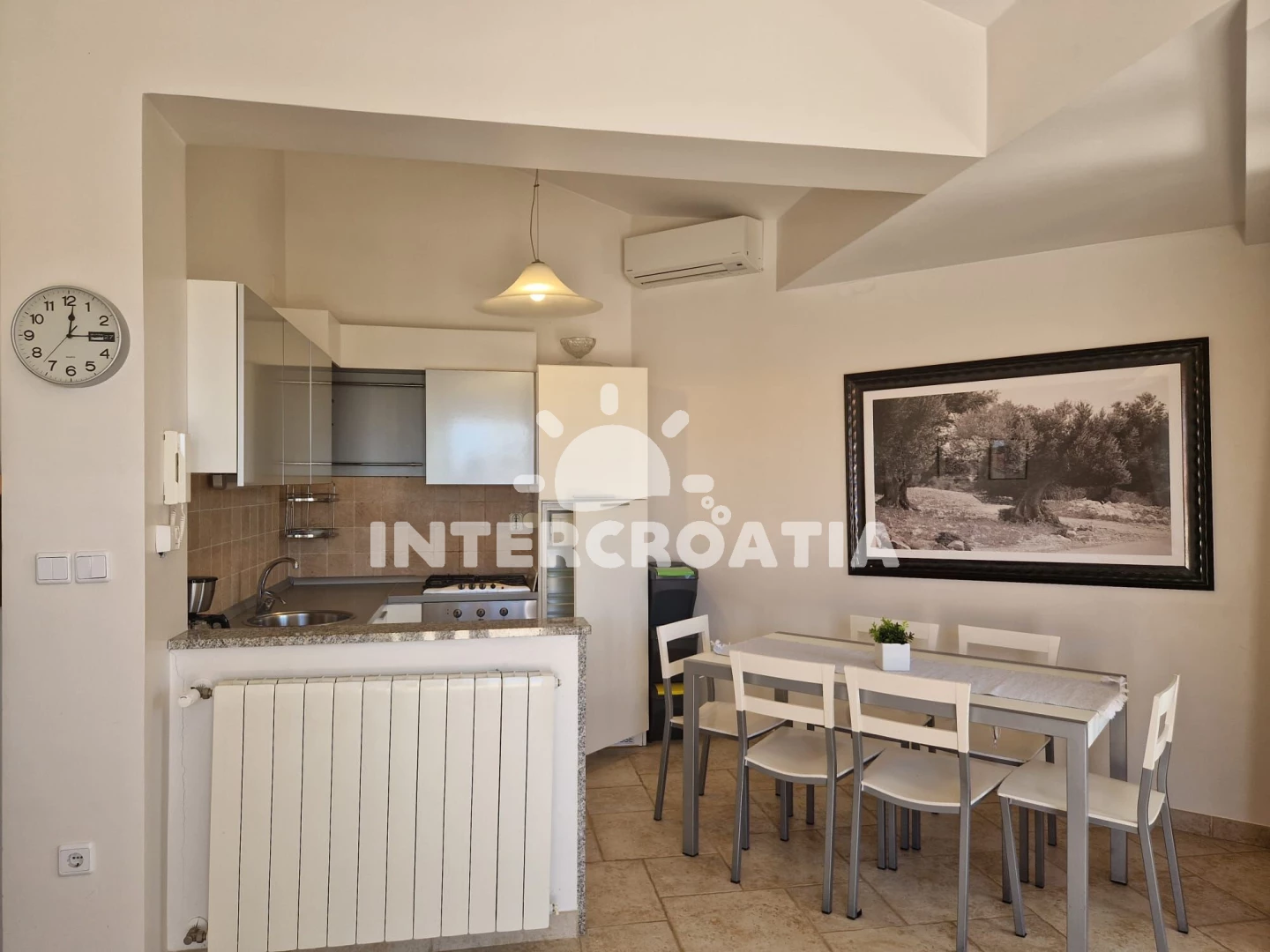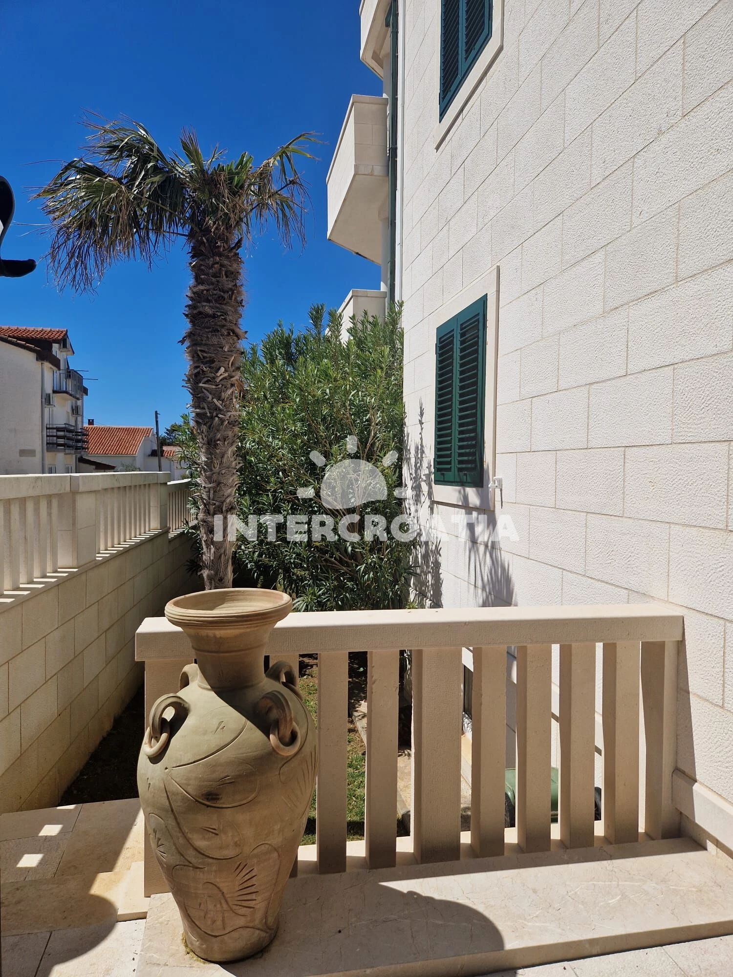 Vzdálenosti: Moře a oblázková pláž 500 m, restaurace 50 m, bar 100 m, supermarket 400 m, centrum města 700 m, veřejná doprava 100 m, ambulance, lékárna a směnárna 300 m, banka 500 m, pošta 800 m, trajekt (Žigljen) 8 km, letiště (Zadar) 90 km.