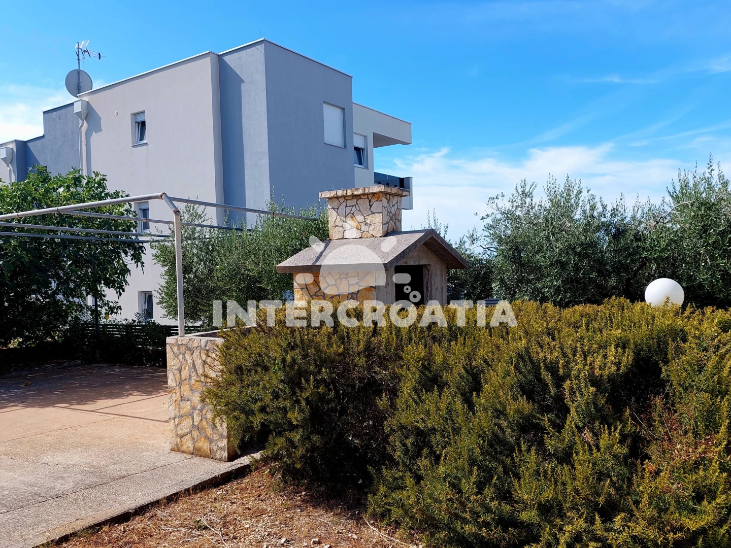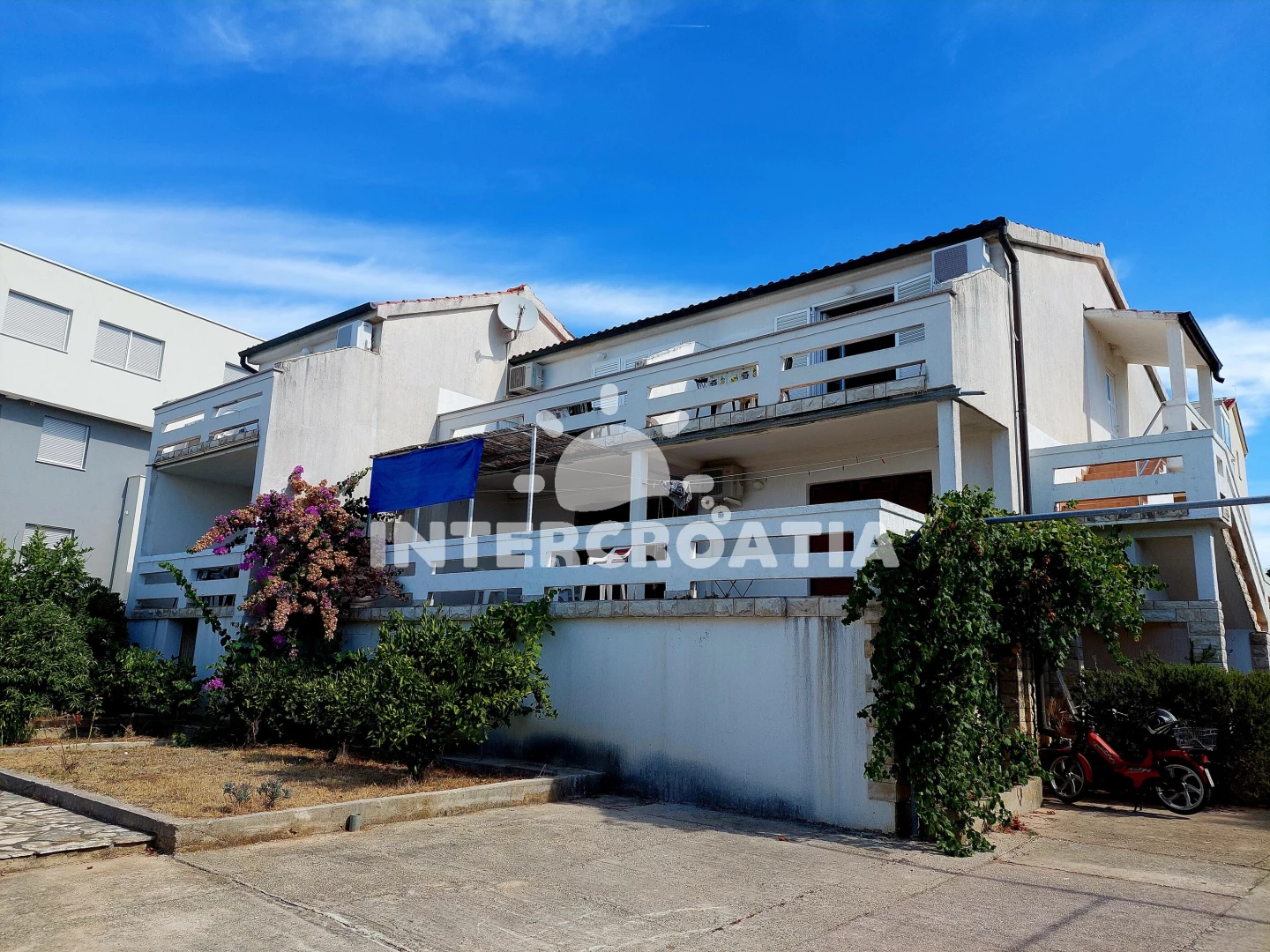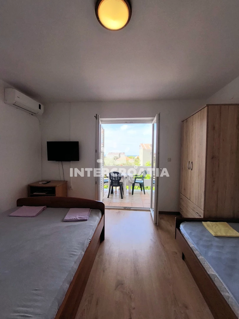 Vzdálenosti: Moře 700 m, pláž (oblázková) 1 km, restaurace a bar 300 m, obchod s potravinami 350 m, lékárna 300 m, veřejná doprava 200 m, centrum 300 m, banka 400 m, směnárna a pošta 500 m, ambulance a čerpací stanice 1 km, trajekt (Žigljen) 8 km, letiště (Zadar) 80 km.