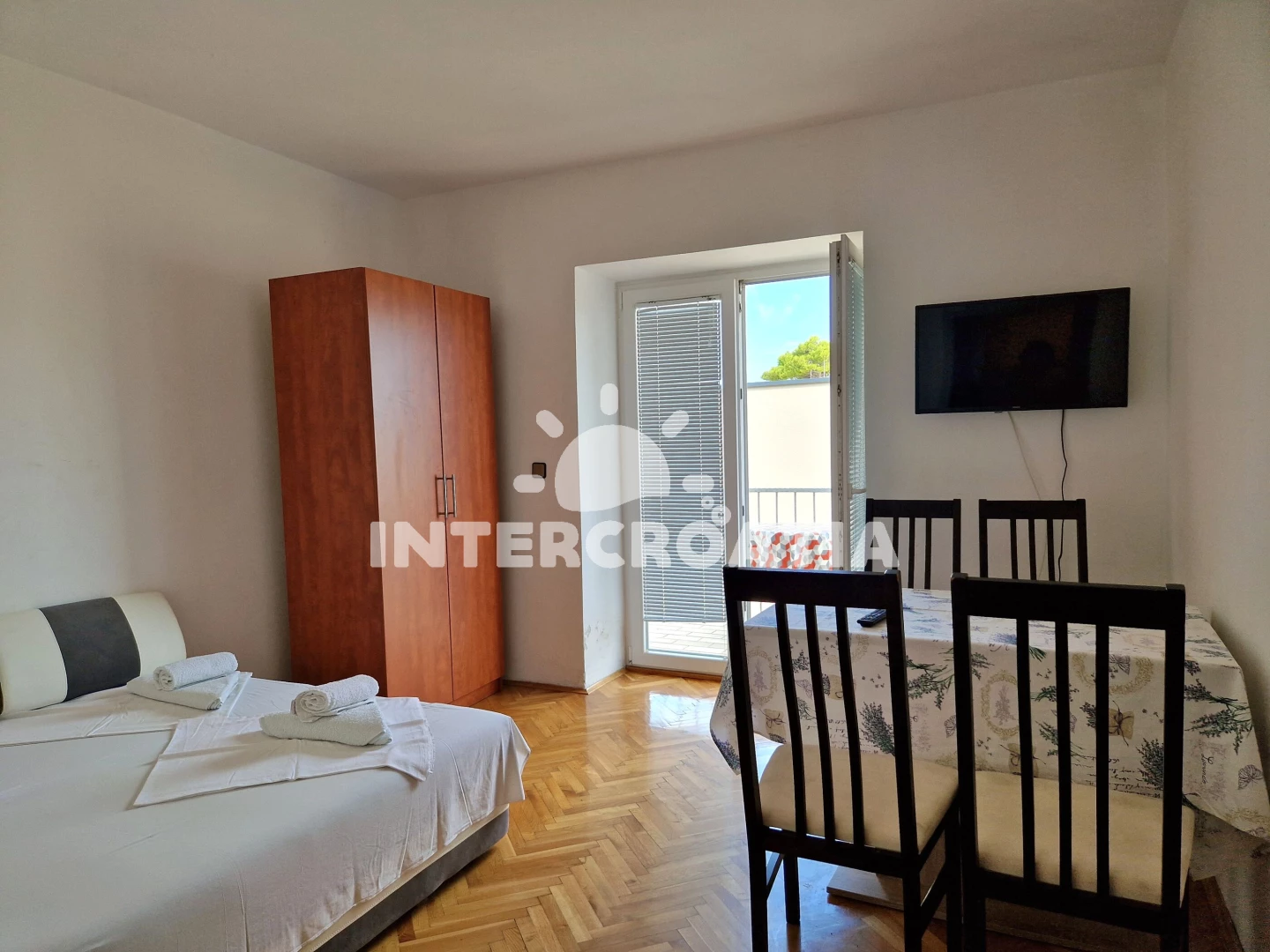 Apartmán (35 m2) s balkonem a venkovním posezením se nachází v 1. patře domu. Apartmán má 1 ložnici a je vhodný pro až 4 osoby. Obývací pokoj je spojený s kuchyní. Kuchyňská linka je vybavena dvouplotýnkovým vařičem, rychlovarnou konvicí, nádobím a lednicí s mrazákem. Obývací pokoj s jídelním stolem, pohovkou (rozložitelná na extra lůžko pro 2 osoby), televizí, klimatizací a vstupem na balkon. Ložnice s dvoulůžkem a vstupem na balkon. Koupelna se sprchovým koutem, umyvadlem a wc. Hostům je k dispozici parkování u objektu zdarma.