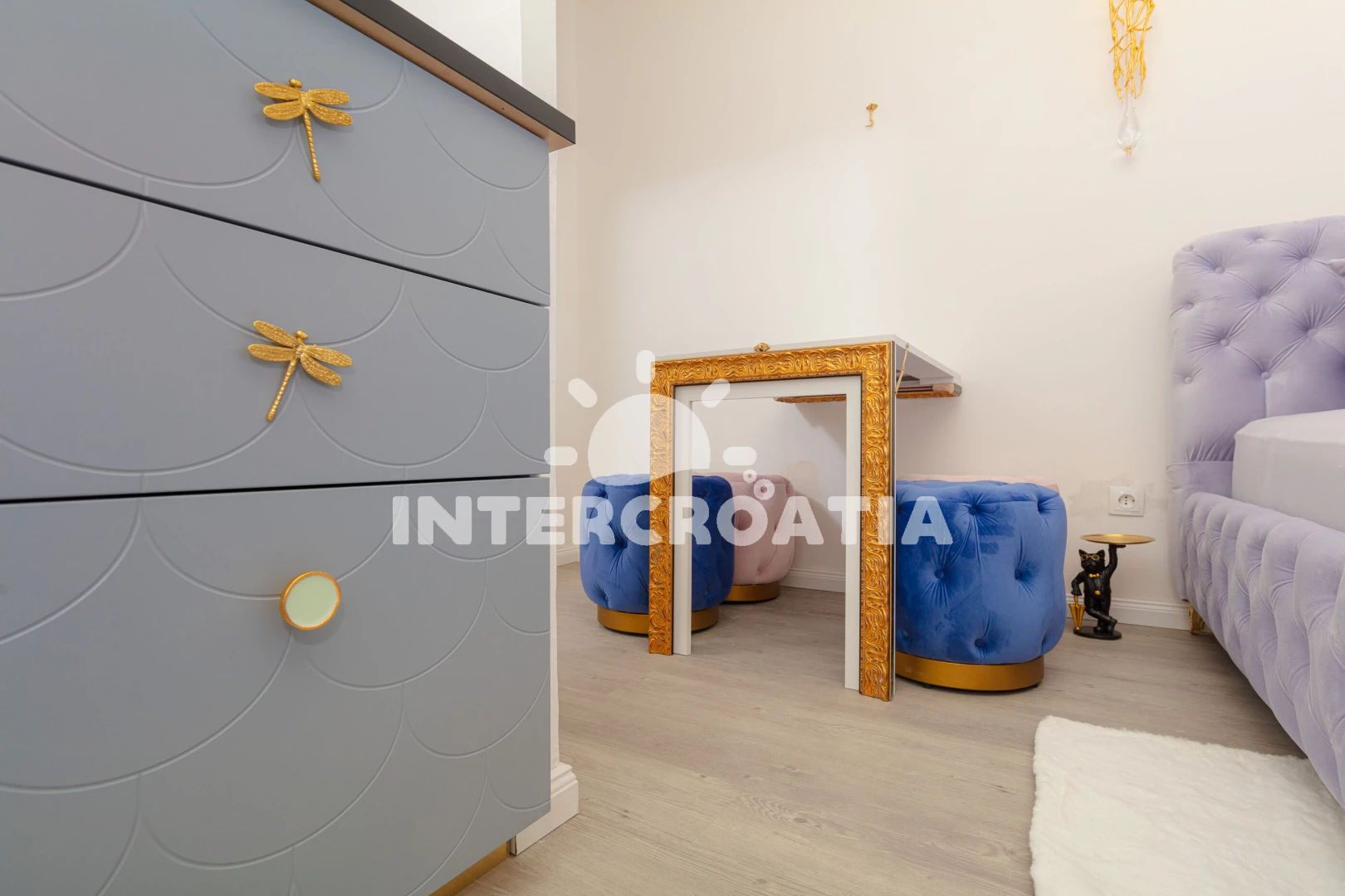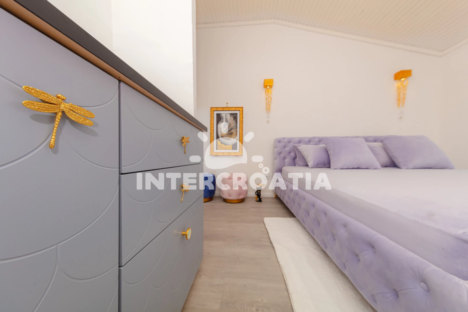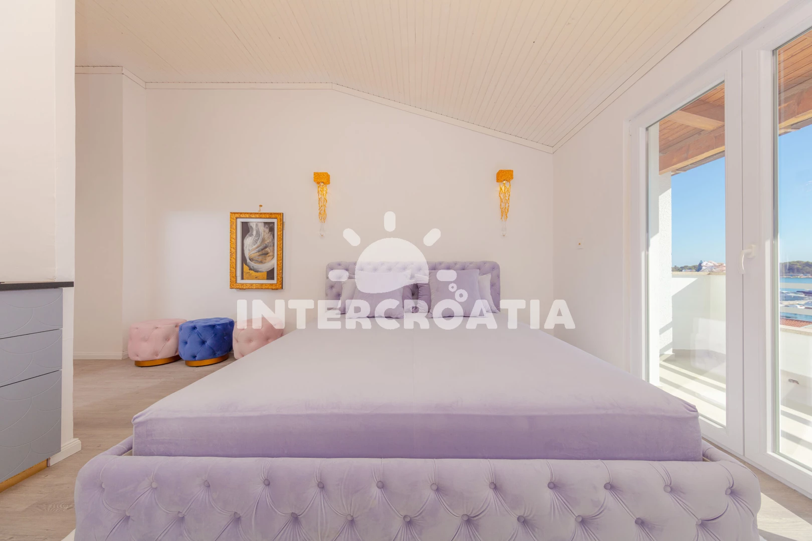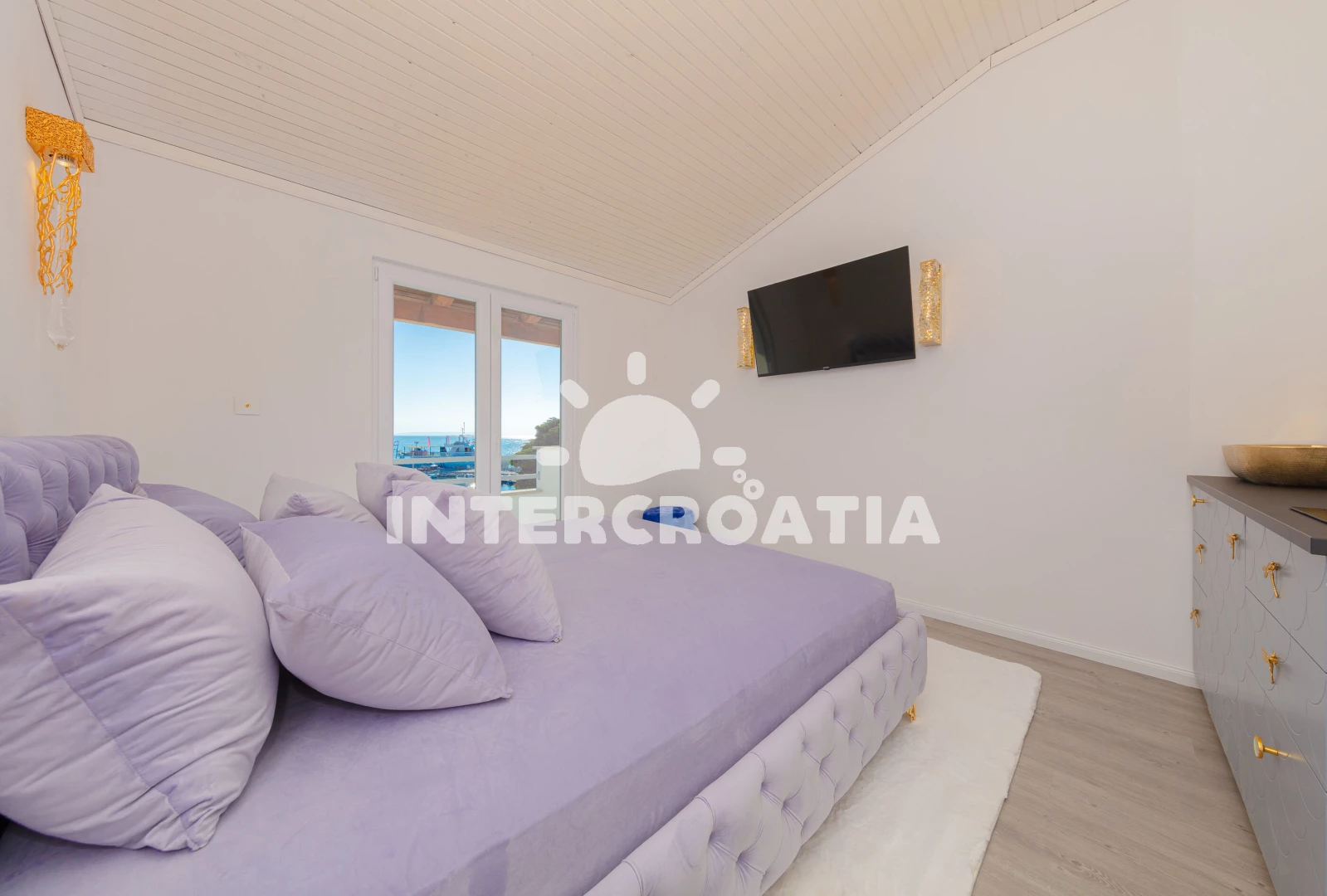Luxusně zařízený pokoj (22 m2) s balkonem, výhledem na moře a venkovním posezením se nachází ve 2. patře domu. Ubytování je vhodné pro 2 osoby a je vybavené dvouplotýnkovým vařičem, malou chladničkou, sejfem, klimatizací, televizí se satelitním programem, vstupem na balkon a jedním dvoulůžkem. Koupelna se sprchovým koutem, umyvadlem, fénem a wc. Hostům je k dispozici používání zařízené kuchyně a parkování u objektu zdarma.