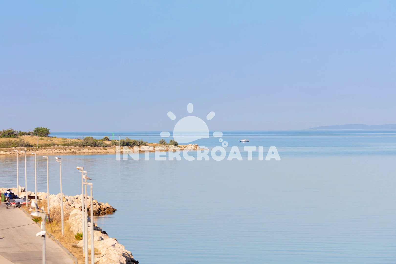 Vzdálenosti: Moře 20 m, betonová pláž 450 m, pláž (písečná-oblázková) 650 m, obchod s potravinami 20 m, restaurace 50 m, bar, banka, pošta a přístav 20 m, centrum města a veřejná doprava 10 m, směnárna a čerpací stanice 30 m, ambulance, lékárna, muzeum, půjčovna cyklistických kol a motorových člunů 100 m, diskotéka 400 m, potápění 500 m, tenisové kurty 600 m, park Plitvice 133 km, trajekt (Zigljen) 7 km, letiště (Zadar) 78 km.