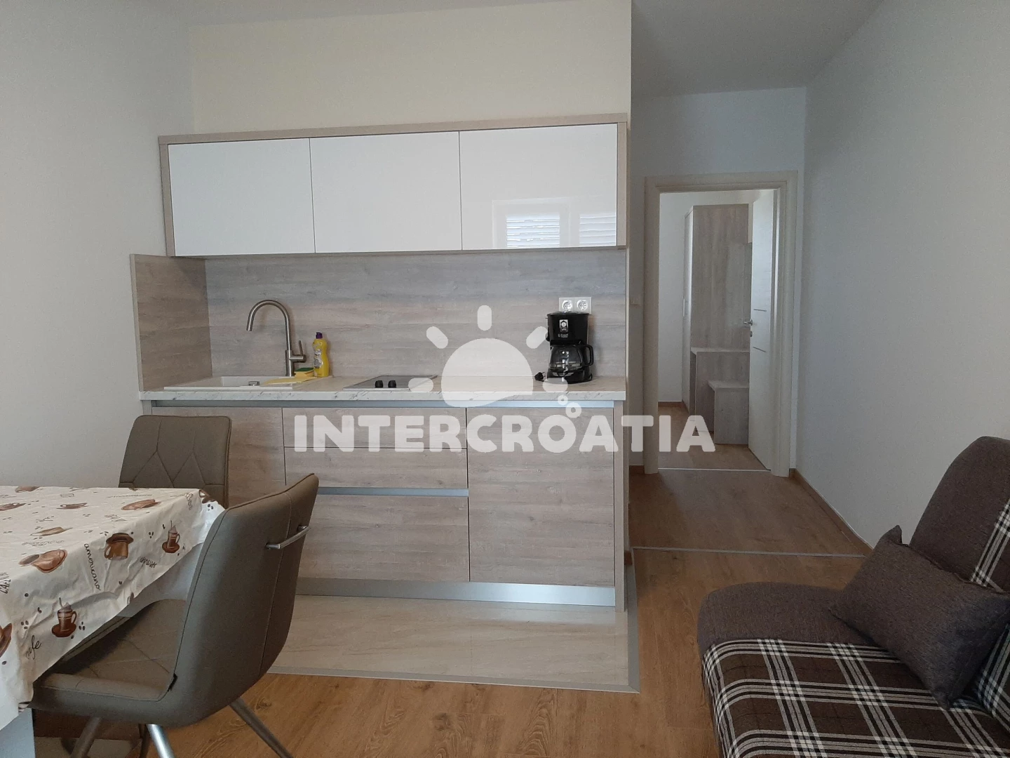 Vzdálenosti: Moře 100 m, pláž 100 m (písčitá a oblázková), směnárna 40 m, supermarket 50 m, půjčovna kol 50 m, restaurace 50 m, bar 50 m, půjčovna motorových člunů 100 m, veřejná doprava 100 m, centrum 200 m, diskotéka 300 m, banka 300 m, lékárna 350 m, pošta 400 m, muzeum 500 m, ambulance 600 m, čerpací stanice 800 m, tenisové kurty 800 m, trajekt (Žigljen) 8 km, letiště (Zadar) 70 km,
