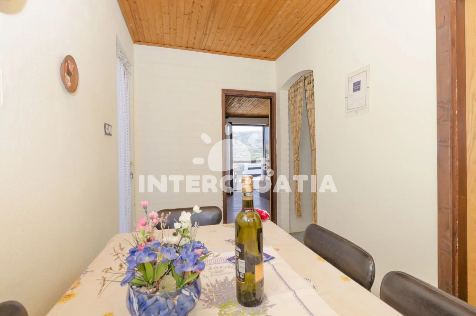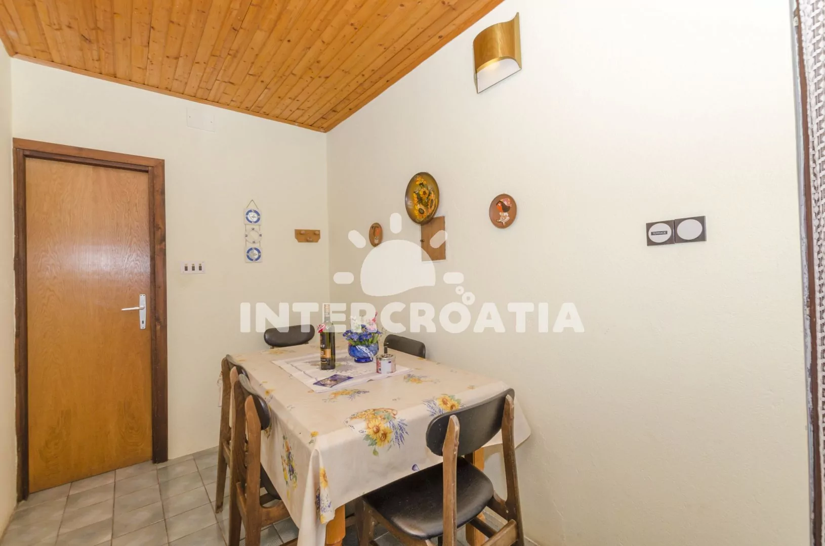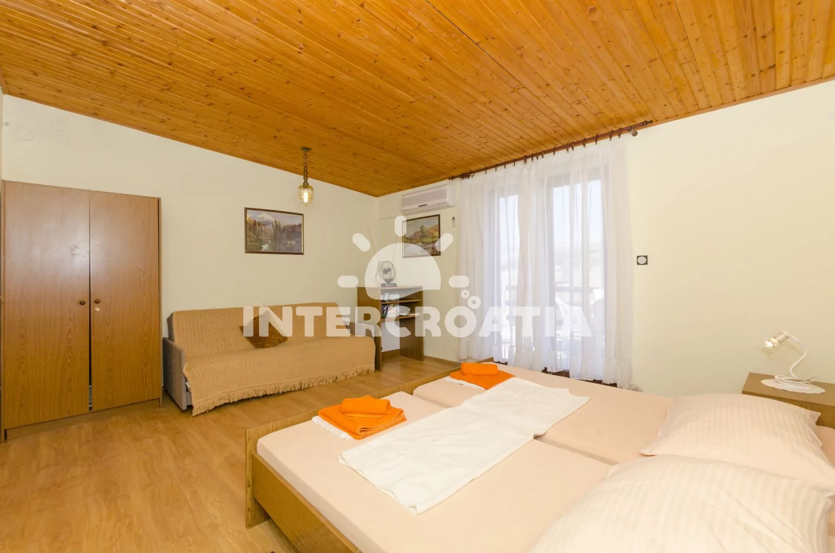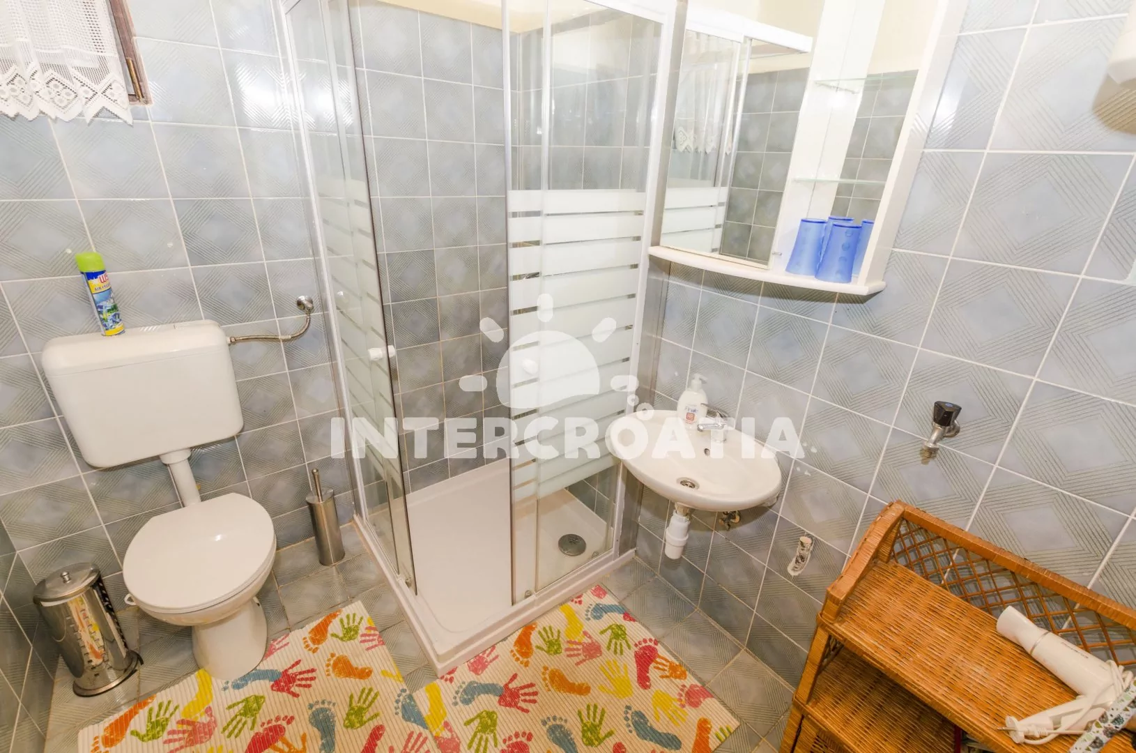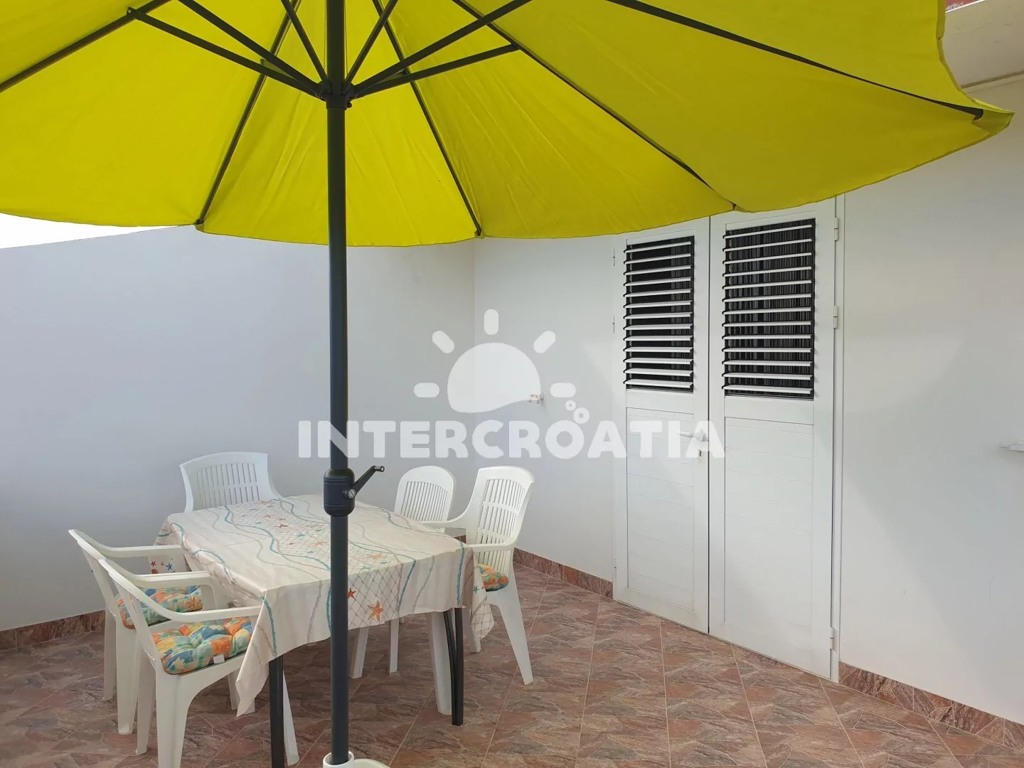 Apartmán pro 4 osoby s výhledem na moře a terasou s posezením se nachází v prvním patře domu. Kuchyň s jídelním stolem pro 4 osoby, kuchyňskou linkou se sporákem, troubou, kávovarem, nádobím a lednicí s mrazákem. První ložnice s jedním dvoulůžkem, televizí, klimatizací a vstupem na terasu. Druhá ložnice s jedním dvoulůžkem. Koupelna se sprchovým koutem umyvadlem, fénem a wc. Hostům je k dispozici parkování u objektu zdarma.