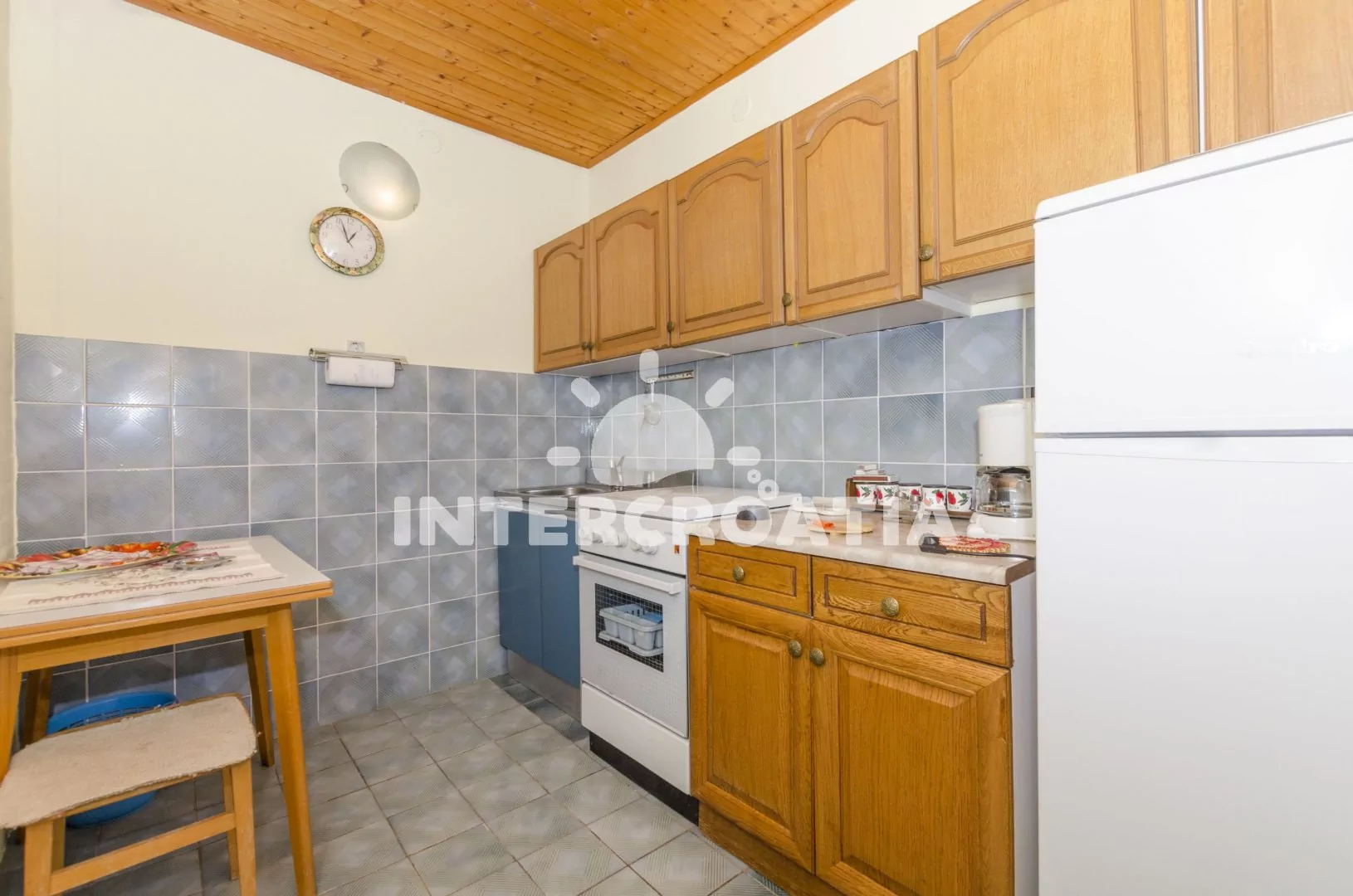 Apartmán pro 4 osoby s výhledem na moře a terasou s posezením se nachází v prvním patře domu. Kuchyň s jídelním stolem pro 4 osoby, kuchyňskou linkou se sporákem, troubou, kávovarem, nádobím a…