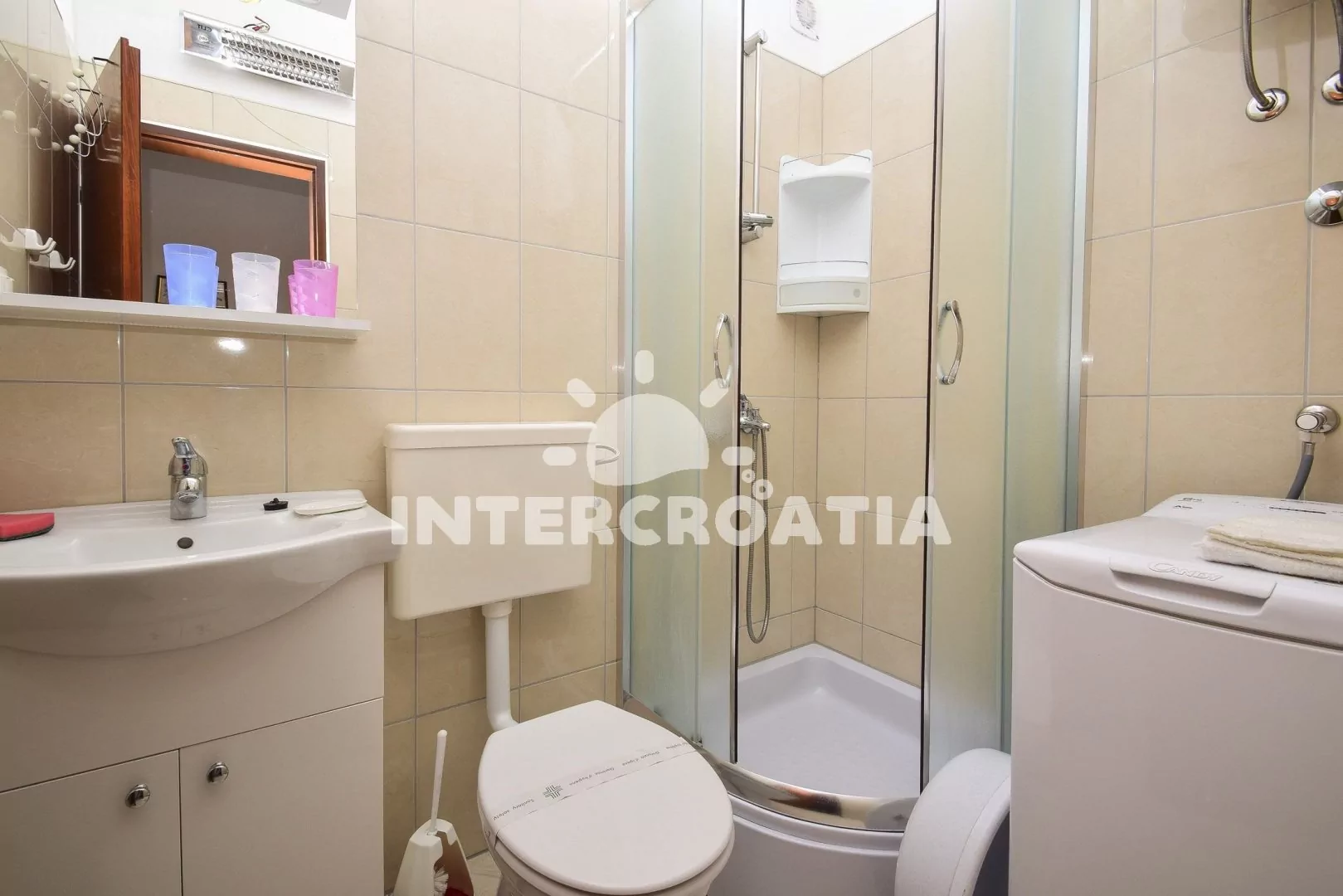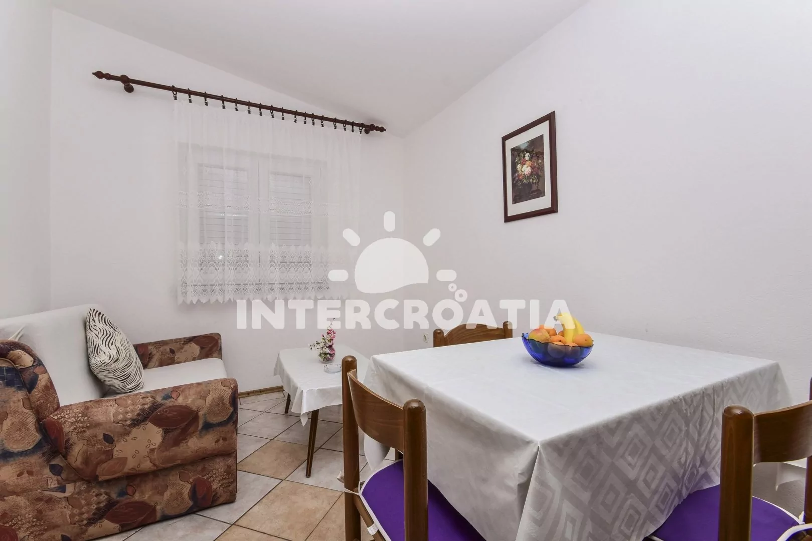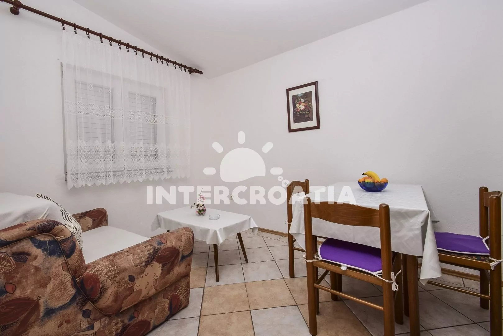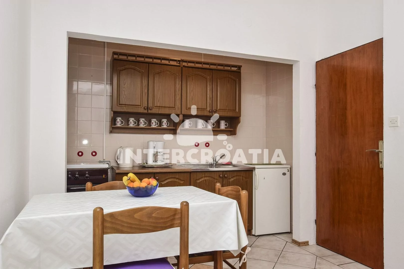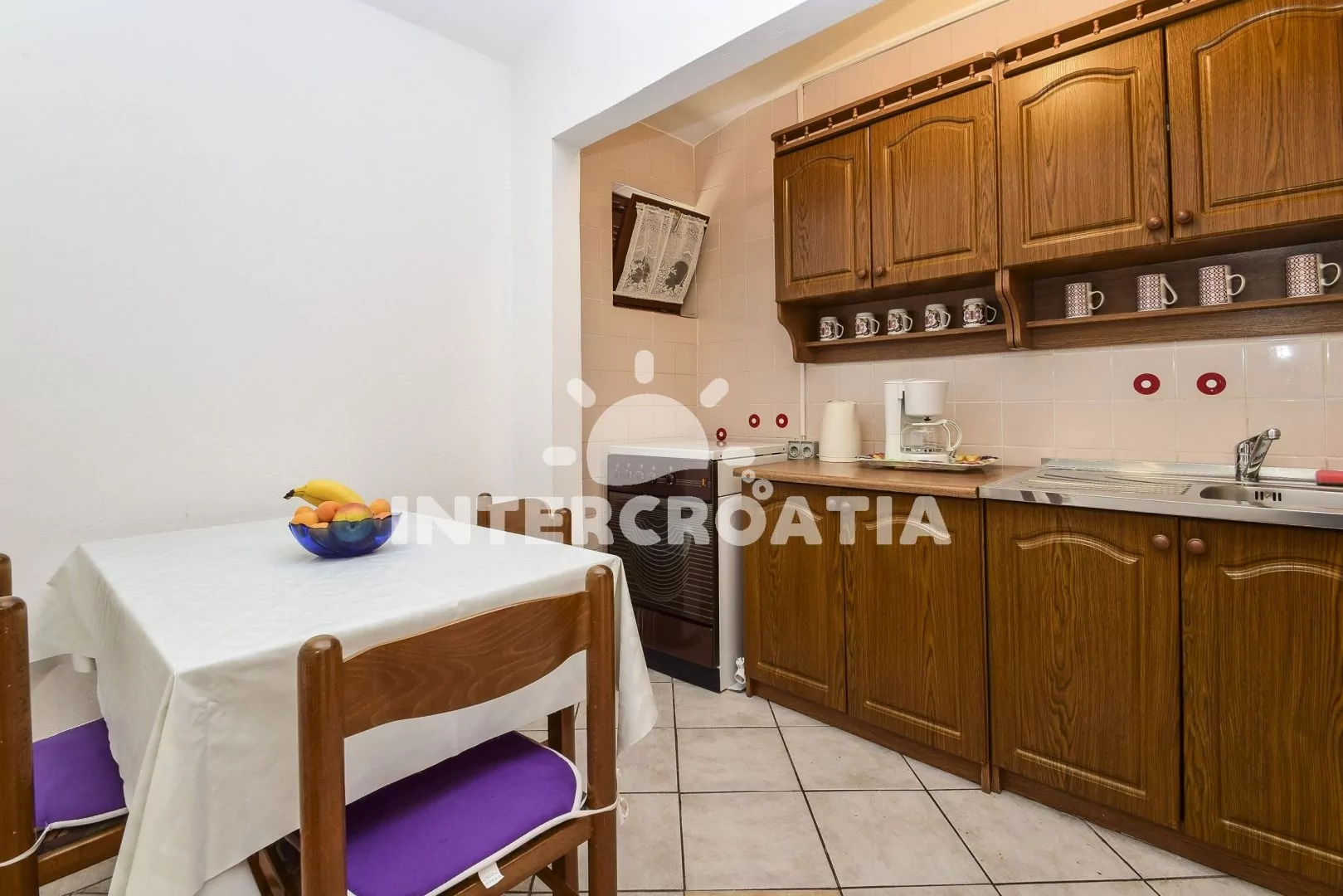 Apartmán pro 3 až 4 osoby, s výhledem na moře, vlastní terasou a venkovním posezením se nachází v prvním patře. Obývací pokoj je spojený s kuchyní. Kuchyňská linka se sporákem, troubou, rychlovarnou…