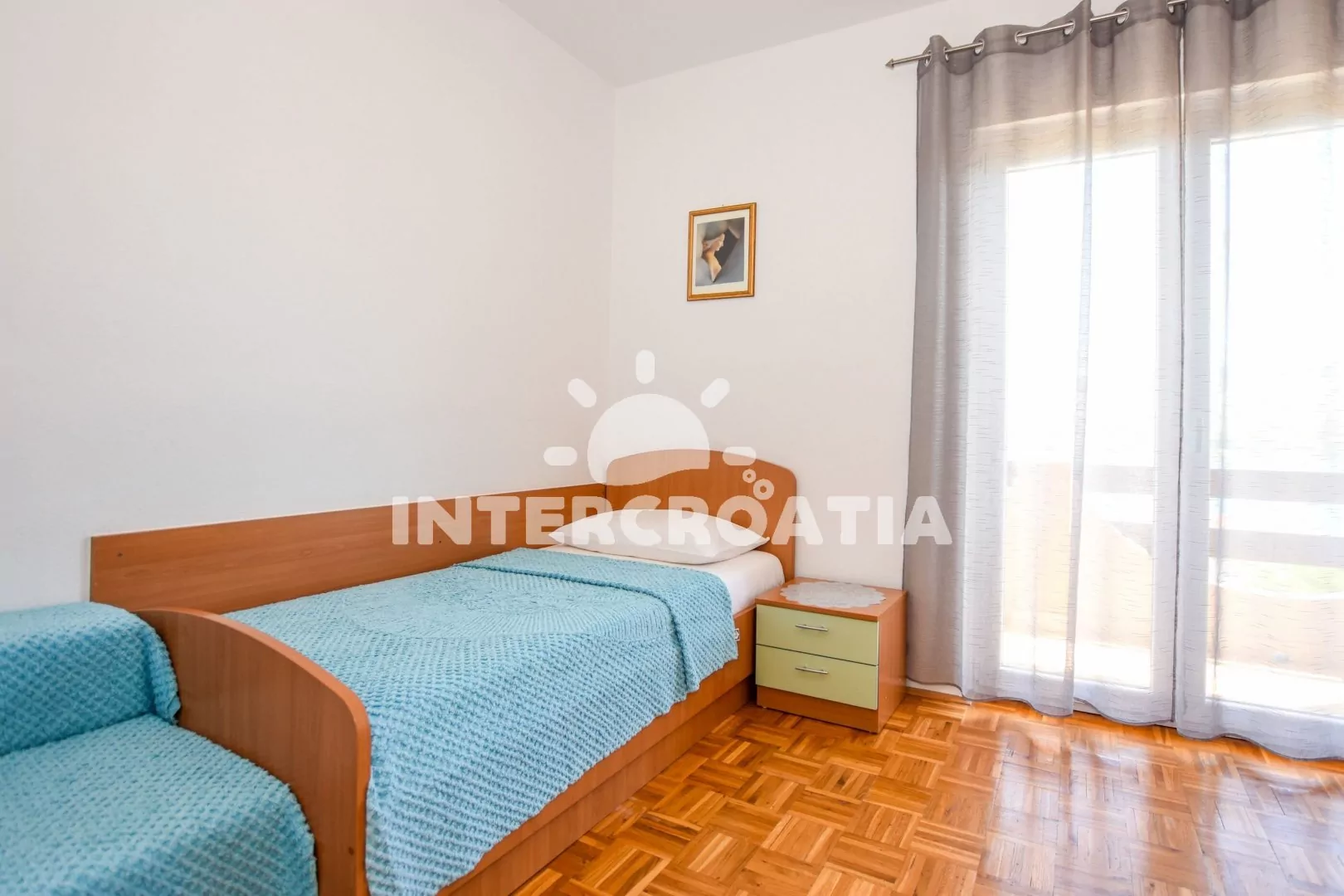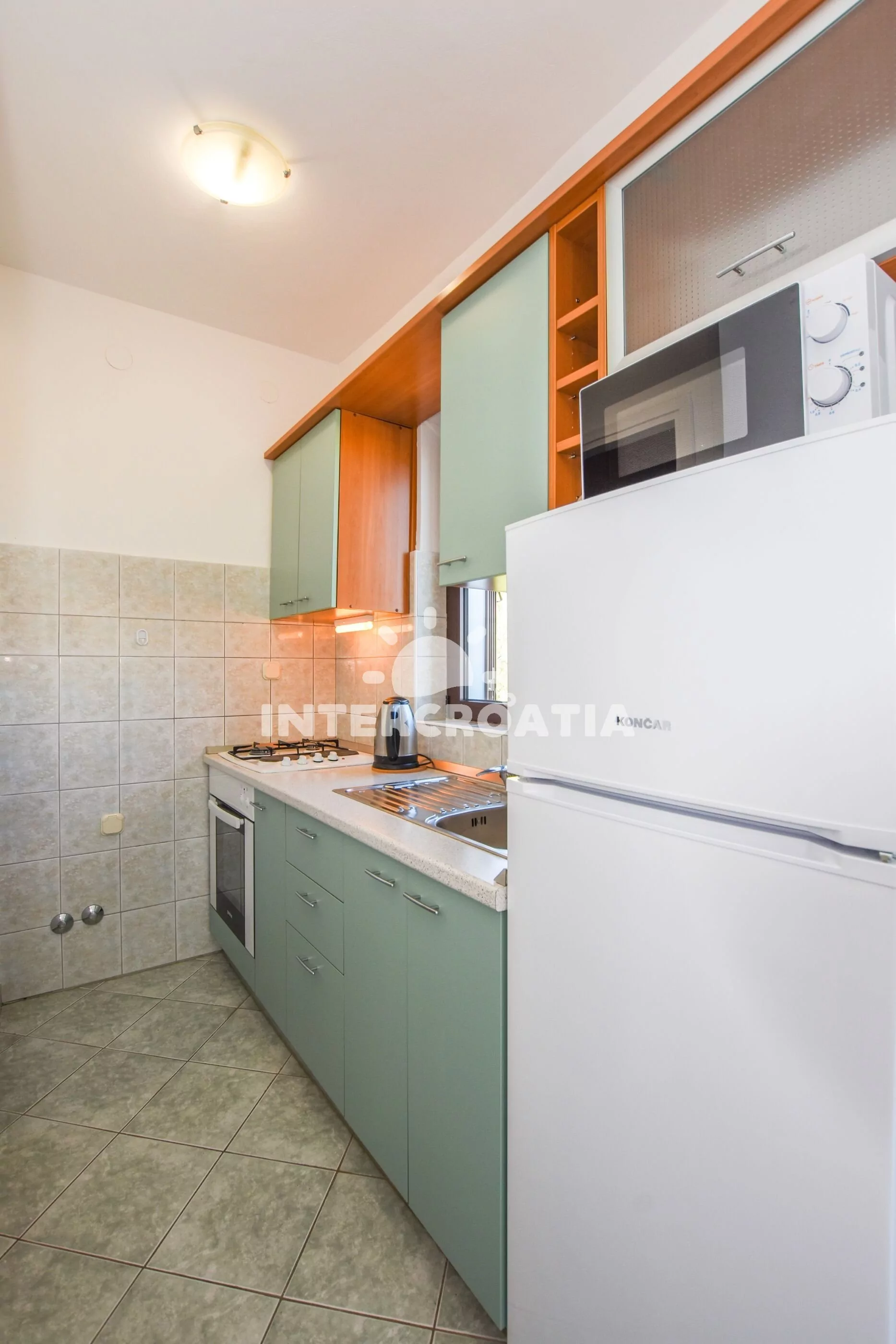 Apartmán s výhledem na moře pro 2 až 3 osoby, nachází se v druhém patře vilky. Kuchyň je vybavena jídelním stolem pro 4 osoby, televizí se satelitním programem, klimatizací, kuchyňskou linkou se sporákem, troubou, rychlovarnou konvicí, mikrovlnnou troubou, nádobím a lednicí s mrazákem. Ložnice s jedním dvoulůžkem, jednolůžkem a vstupem na balkon. Koupelna se sprchovým koutem, umyvadlem, fénem a wc. Hostům je k dispozici parkování u objektu zdarma.