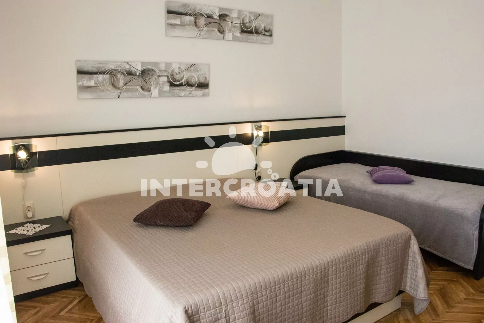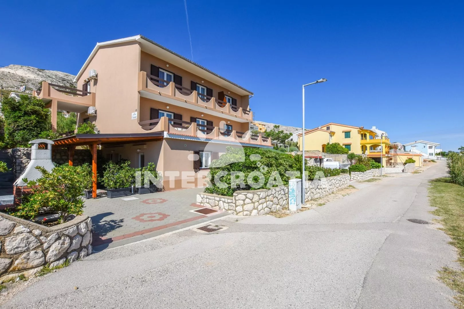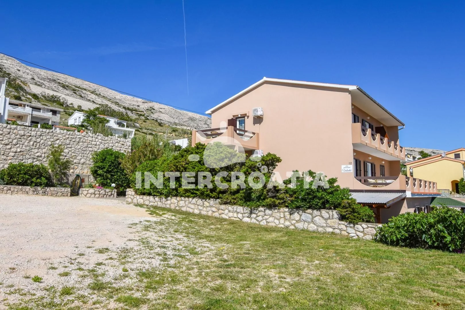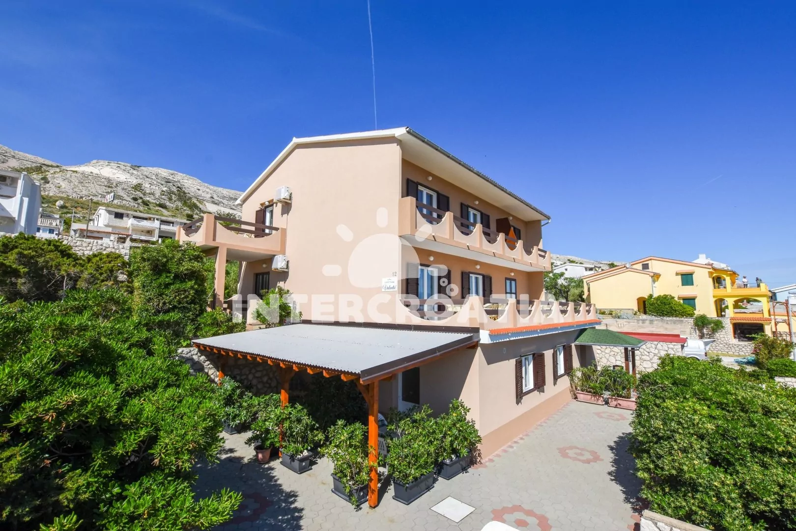 Vzdálenosti: Moře 180 m, centrum, veřejná doprava 1 km, restaurace, bar 300 m, supermarket 400 m, ambulance 800 m, lékárna, směnárna, pošta, banka, čerpací stanice 1 km, trajekt 28 km, letiště 60 km.