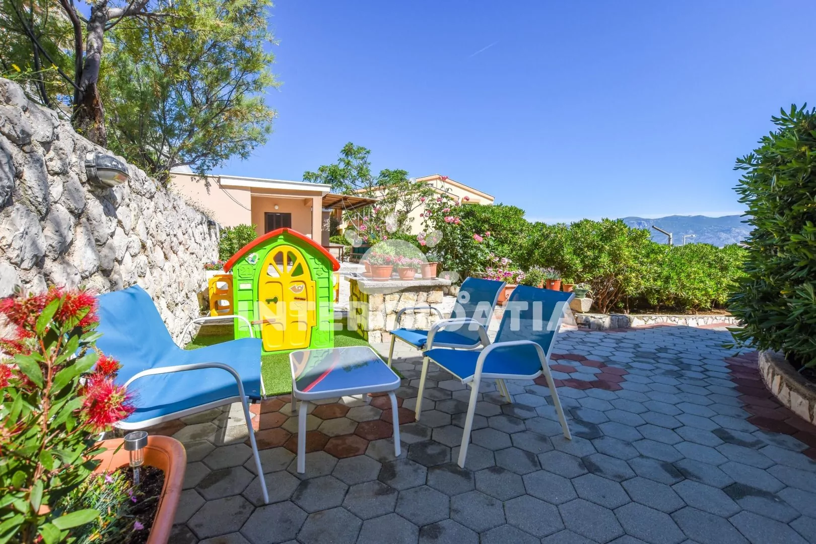 Velmi dobře situovaná patrová vilka, v klidné lokalitě s výhledem na moře. Vlastní pozemek s možností grilování a venkovního posezení.