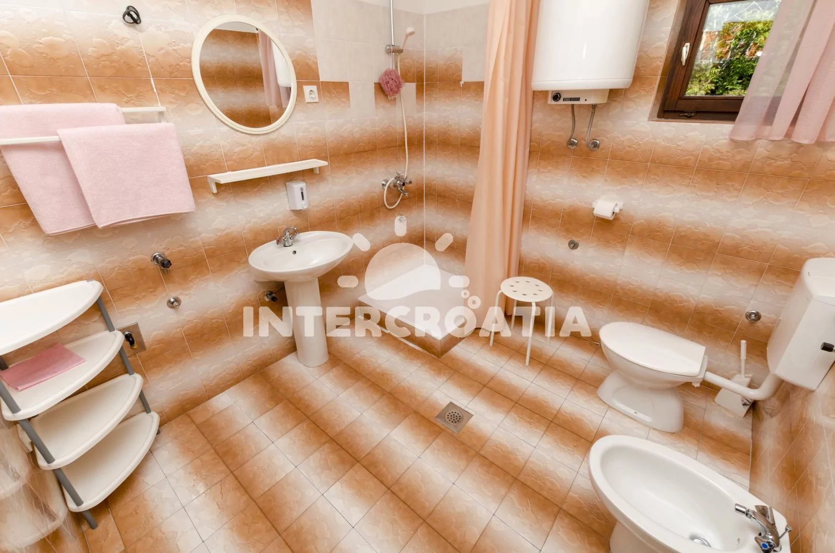 Patrová vilka v blízkosti pláže a s výhledem na moře. Pozemek se zahradou, terasou s posezením, grilem a vlastními parkovacími místy u objektu.