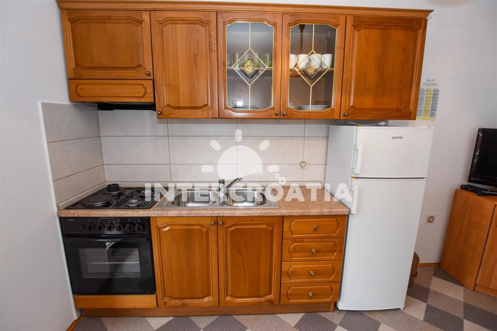 Vzdálenosti: Moře a pláž 300 m, centrum, směnárna, banka, restaurace, přístav 200 m, supermarket, veřejná doprava, pošta, bar, půjčovna kol 100 m, lékárna 220 m, čerpací stanice 250 m, ambulance 300 m, letiště 60 km, trajekt 30 km.