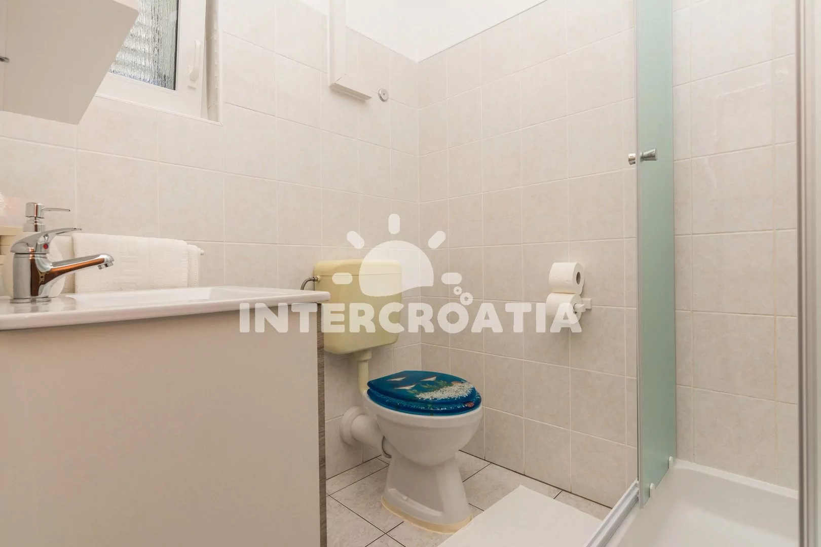 Apartmán (60 m2) s vlastní terasou a výhledem na moře se nachází v 1. patře vily a je vhodný pro 4 osoby. Obývací pokoj je spojený s kuchyní. Kuchyňská linka je vybavena sporákem, myčkou na nádobí, mikrovlnnou troubou, rychlovarnou konvicí, kávovarem, nádobím a lednicí s mrazákem. Obývací pokoj s jídelním stolem pro 4 osoby, pohovkou, televizí, klimatizací a vstupem na terasu. První i druhá ložnice je vybavena vždy s jedním dvoulůžkem. Koupelna se sprchovým koutem, umyvadlem, fénem a wc. Hostům je k dispozici parkování u objektu zdarma.