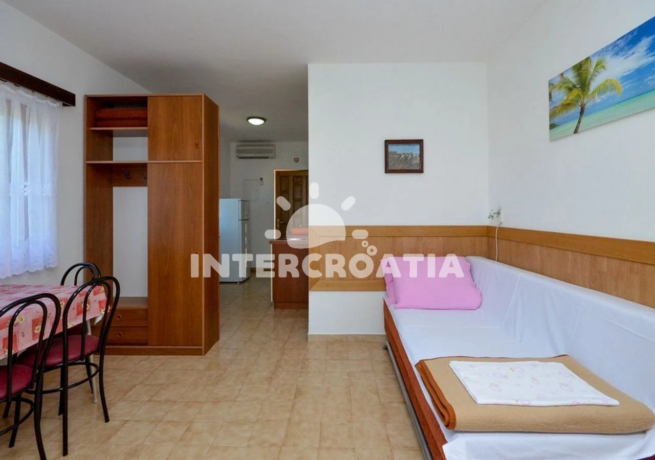 Vzdálenosti: Moře 180 m, pláž 200 m (písčitá, oblázková a skalnatá), centrum 30 m, restaurace 100 m, bar 100 m, kotviště pro čluny 200 m, potápění 8 km, půjčovna kol 8 km, diskotéka 8 km, muzeum 8 km, pošta 8 km, banka 8 km, mini golf 8 km, tenisové kurty 8 km, čerpací stanice 8 km, směnárna 8 km, ambulance 8 km, lékárna 8 km, veřejná doprava 8 km, supermarket 8 km, půjčovna motorových člunů 8 km, trajekt (Žigljen) 11 km, marina 20 km, letiště (Zadar) 80 km,