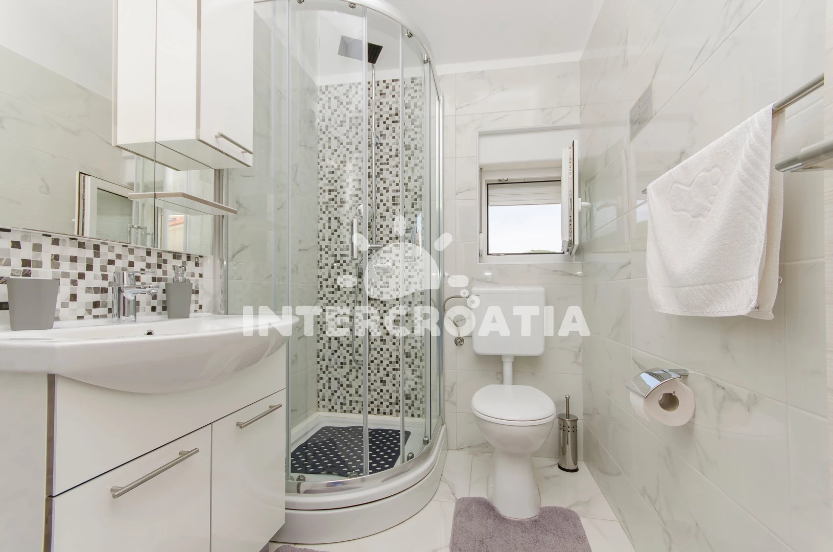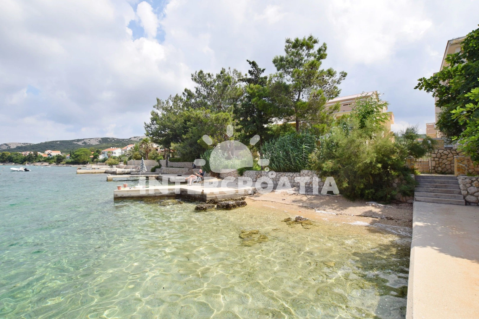 Vzdálenosti: Moře 10 m, pláž 10 m (oblázková a betonové desky), kotviště pro čluny 10 m, bar 50 m, restaurace 50 m, potápění 1,5 km, směnárna 2 km, supermarket 2 km, půjčovna kol 2 km, muzeum 2 km, centrum 2 km, pošta 2 km, veřejná doprava 2 km, banka 2 km, čerpací stanice 2 km, lékárna 2,5 km, ambulance 2,5 km, trajekt (Žigljen) 6 km, letiště (Zadar) 70 km, park Plitvice 80 km,