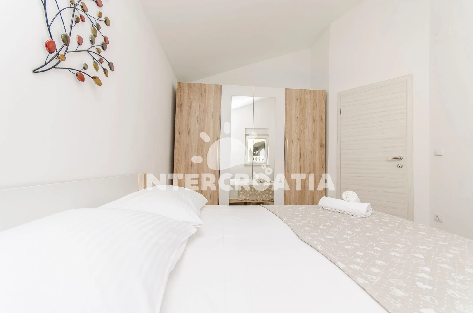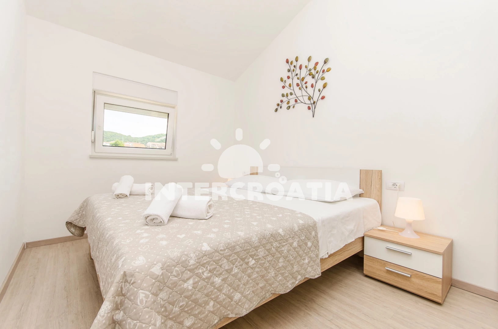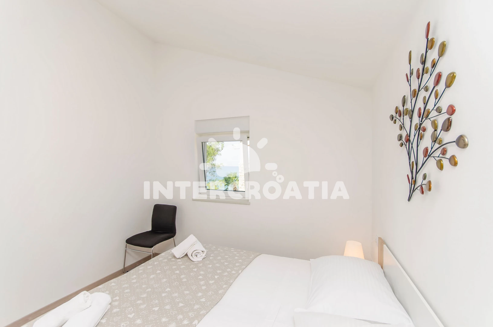 Apartmán (47 m2) s terasou, a výhledem na moře. Nachází se ve 2. patře objektu. Apartmán má 2 ložnice a je vhodný pro až 4 osoby. Kuchyňská linka je vybavena varnou deskou, troubou, rychlovarnou konvicí, nádobím, lednicí. K dispozici televize, žehlička. První ložnice s dvoulůžkem. Druhá ložnice s dvoulůžkem. Koupelna se sprchovým koutem, umyvadlem, fénem a WC.