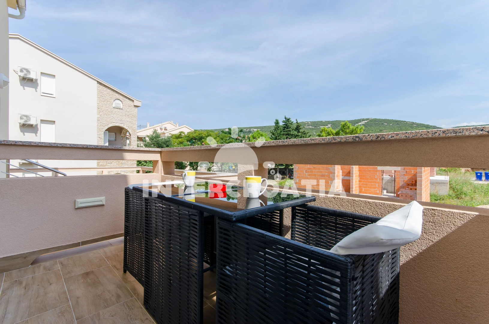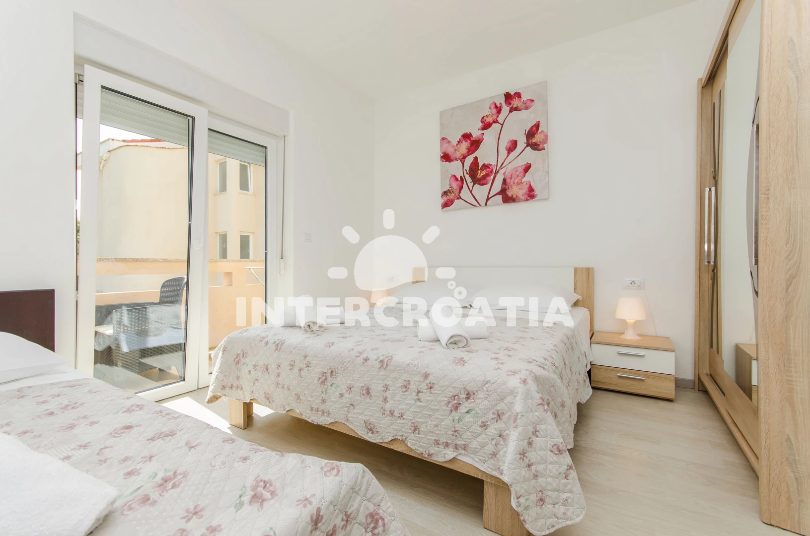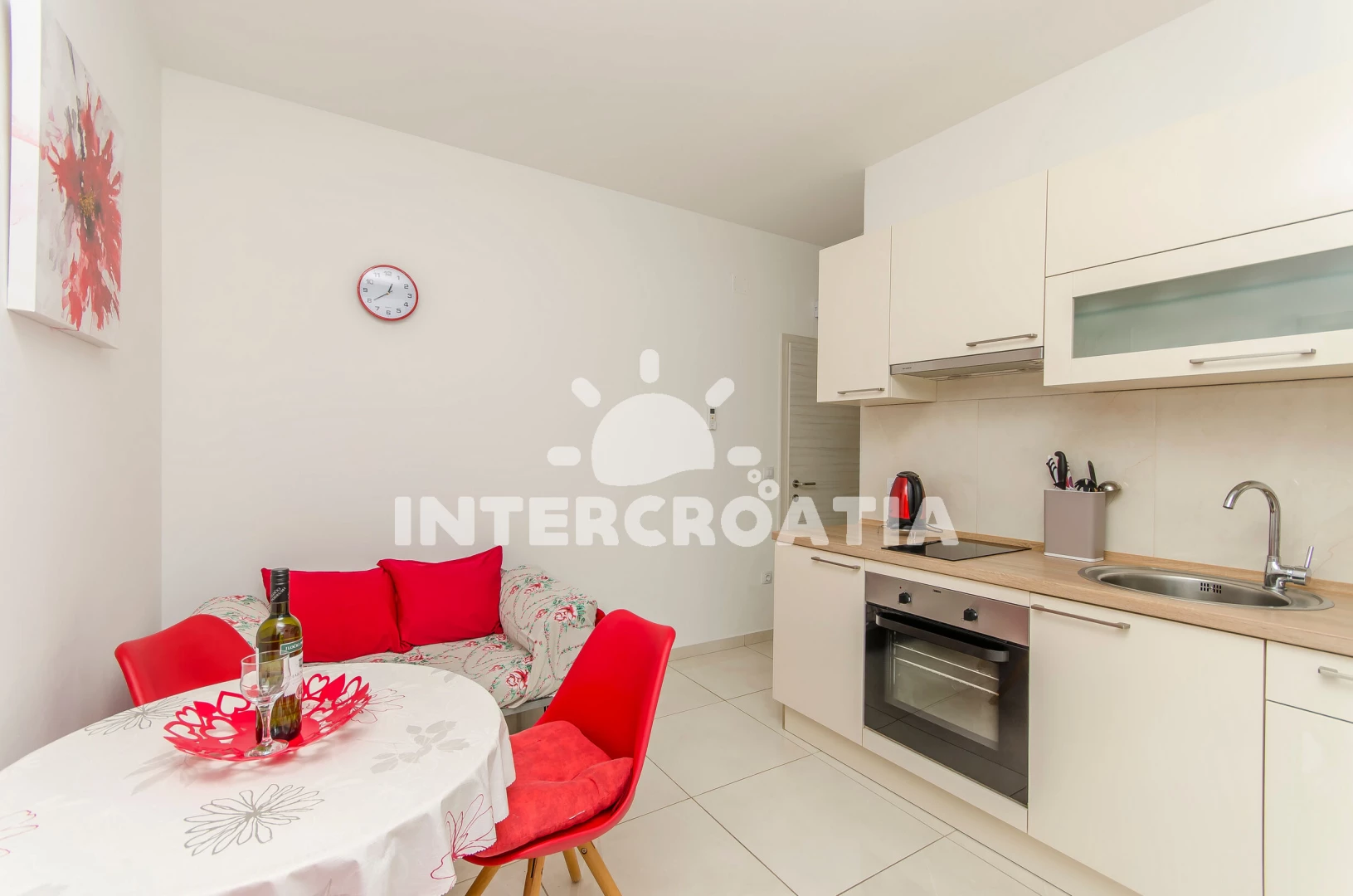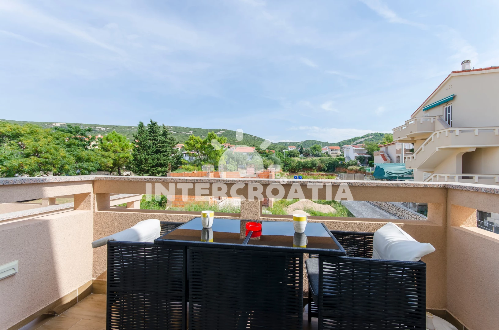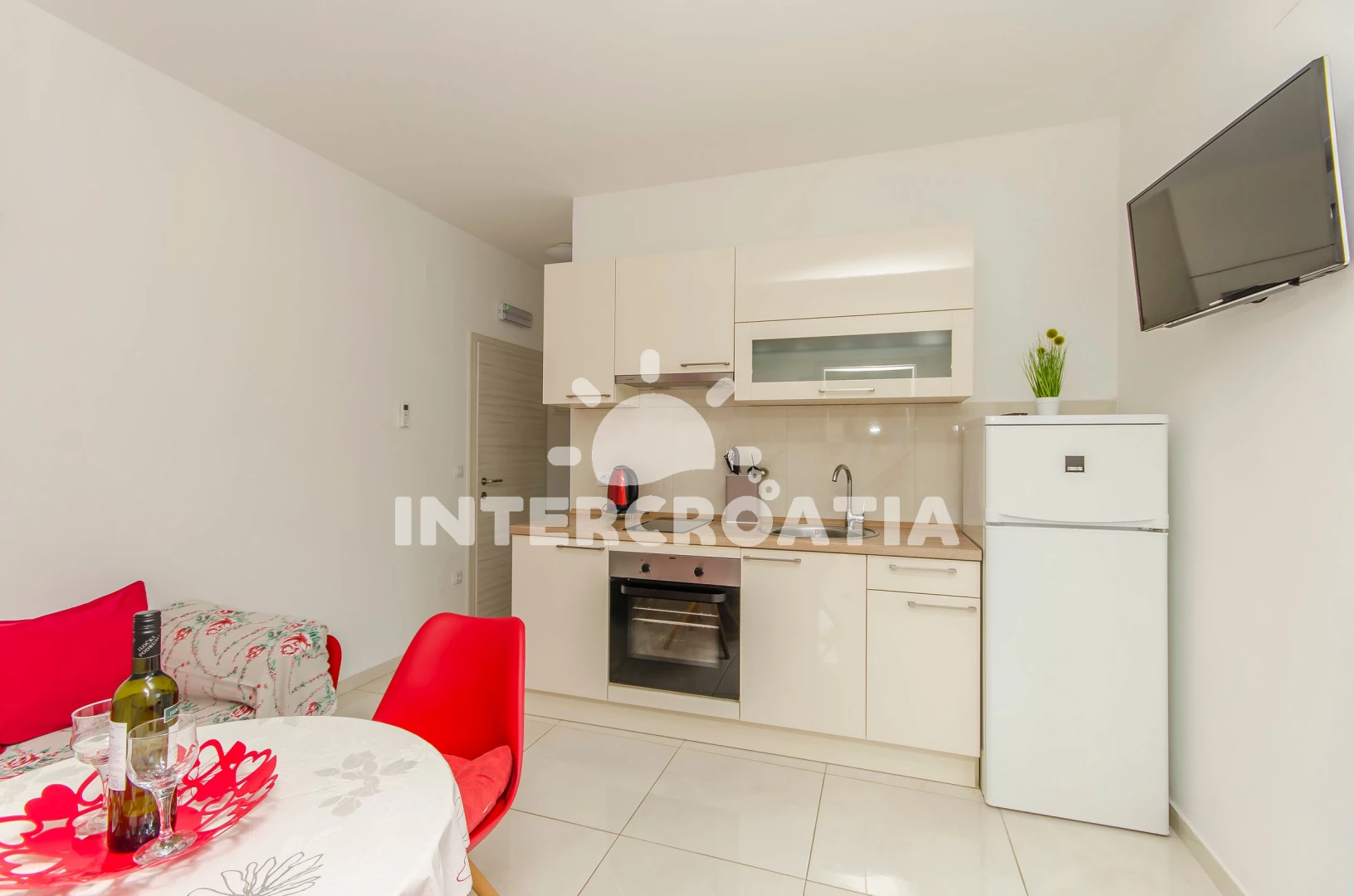 Apartmán se nachází 10 m od moře a pláže. Pláž je oblázková a betonové desky. U objektu je k dispozici společná zahrada s posezením a grilem. Parkování je před domem.