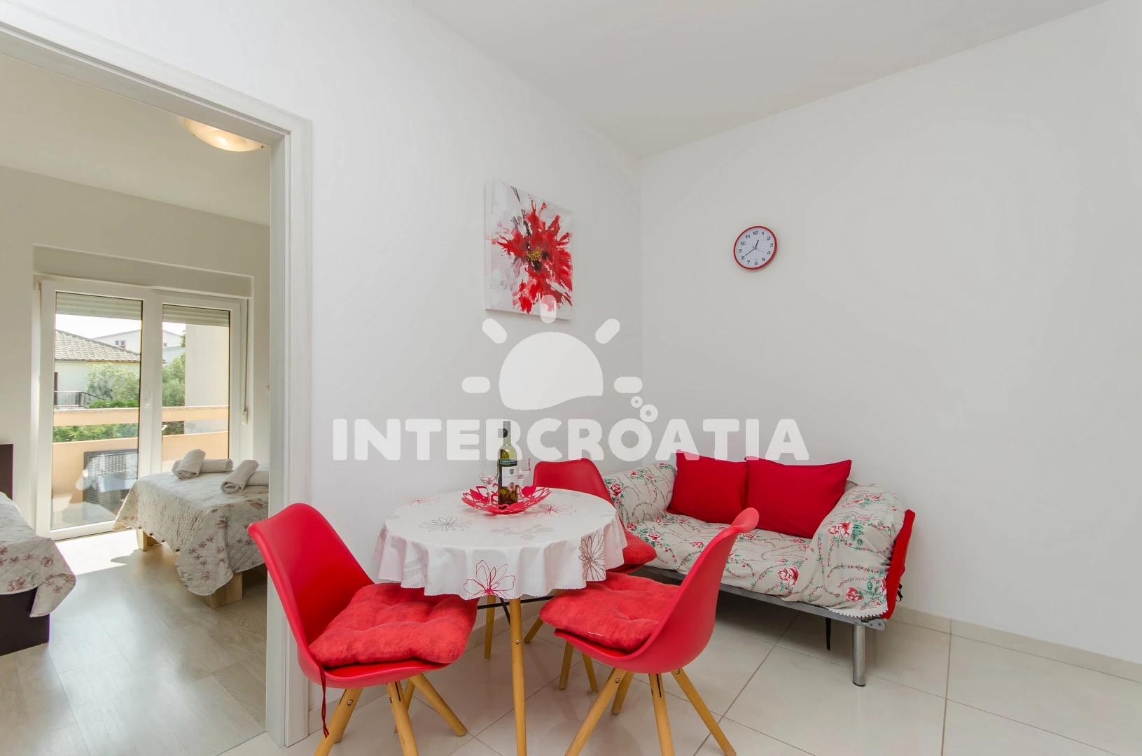 Vzdálenosti: Moře 10 m, pláž 10 m (oblázková a betonové desky), kotviště pro čluny 10 m, bar 50 m, restaurace 50 m, potápění 1,5 km, směnárna 2 km, supermarket 2 km, půjčovna kol 2 km, muzeum 2 km, centrum 2 km, pošta 2 km, veřejná doprava 2 km, banka 2 km, čerpací stanice 2 km, lékárna 2,5 km, ambulance 2,5 km, trajekt (Žigljen) 6 km, letiště (Zadar) 70 km, park Plitvice 80 km,