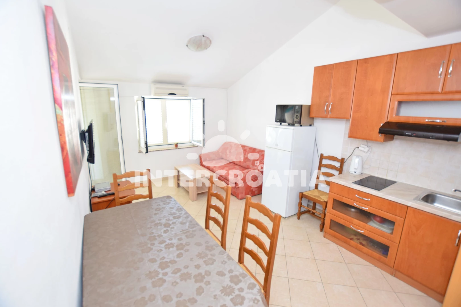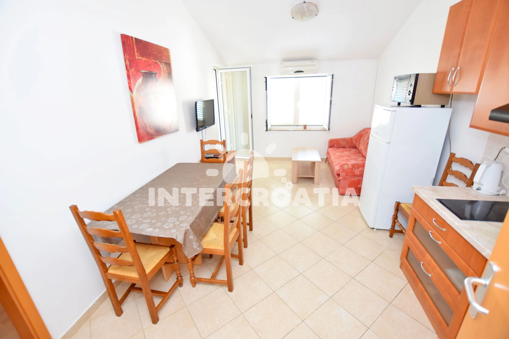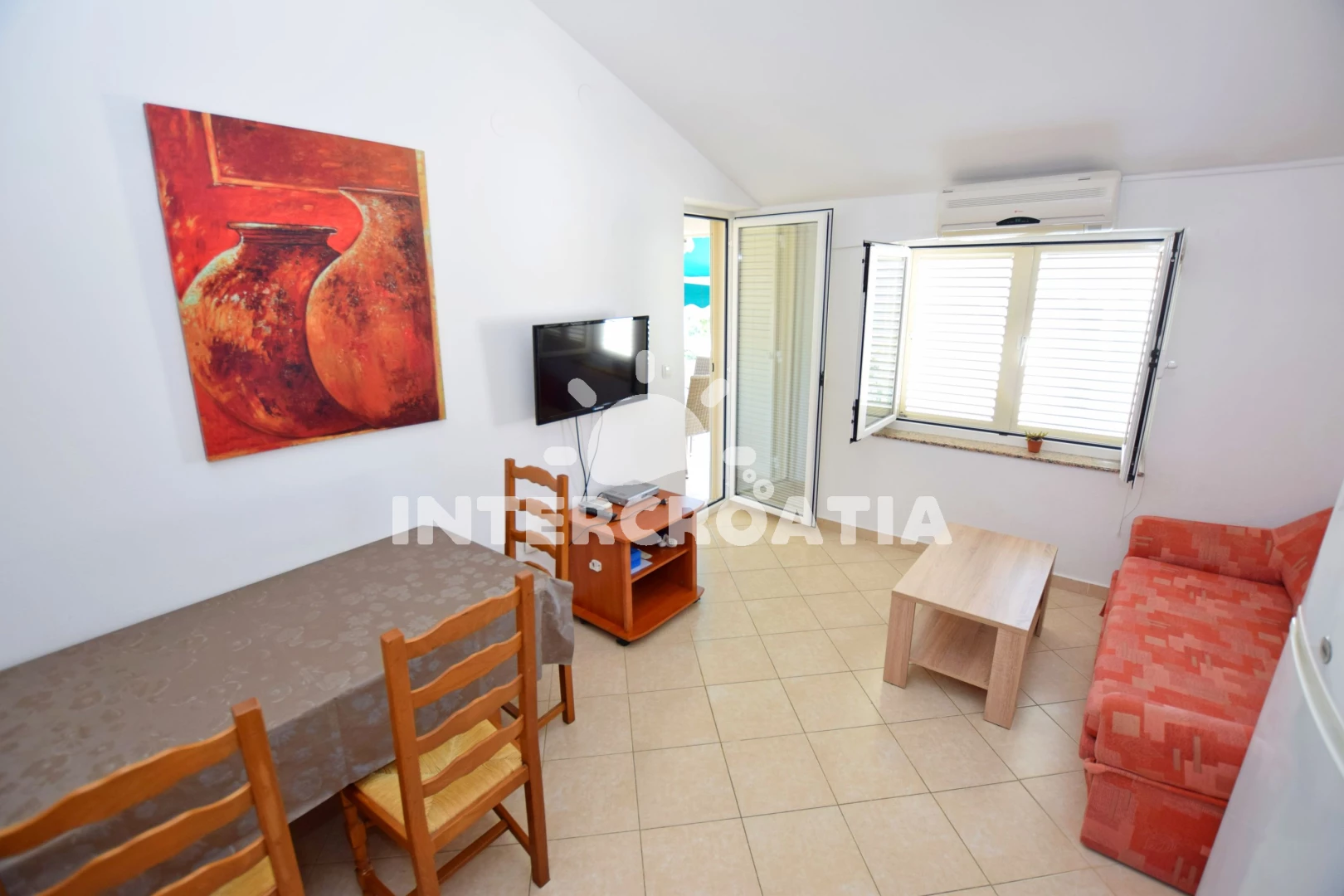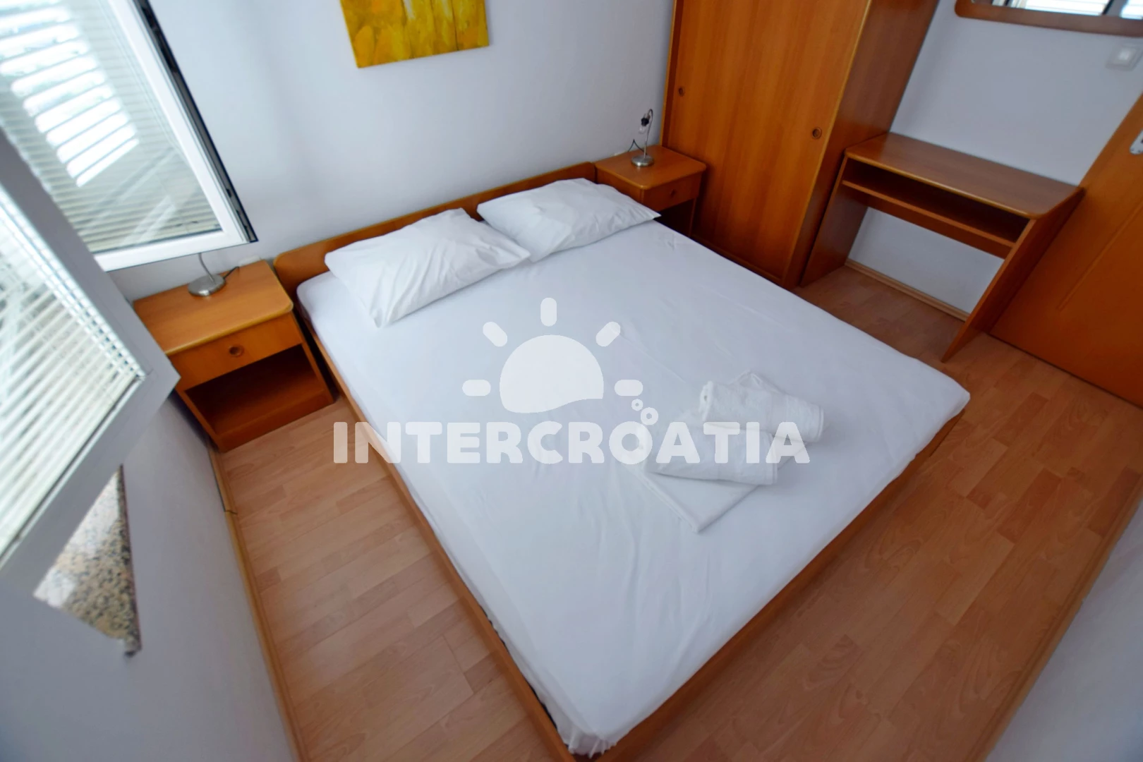 Apartmán se nachází 20 m od moře a pláže. Pláž je skalnatá, oblázková, větší kamení a betonové desky. U objektu je k dispozici společná zahrada s posezením a grilem. Parkování je před domem.
