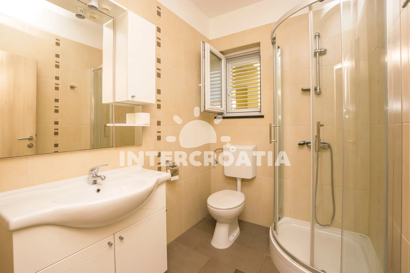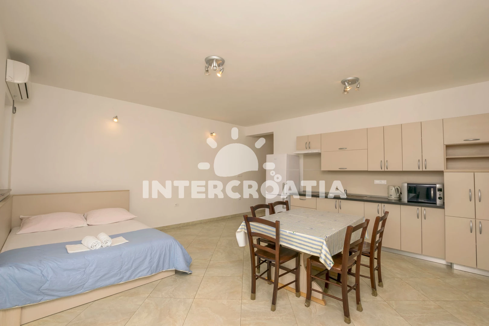 Apartmán se nachází 50 m od moře a pláže. Pláž je skalnatá, oblázková, větší kamení a betonové desky. U objektu je k dispozici společná zahrada s posezením a grilem. Parkování je před domem.