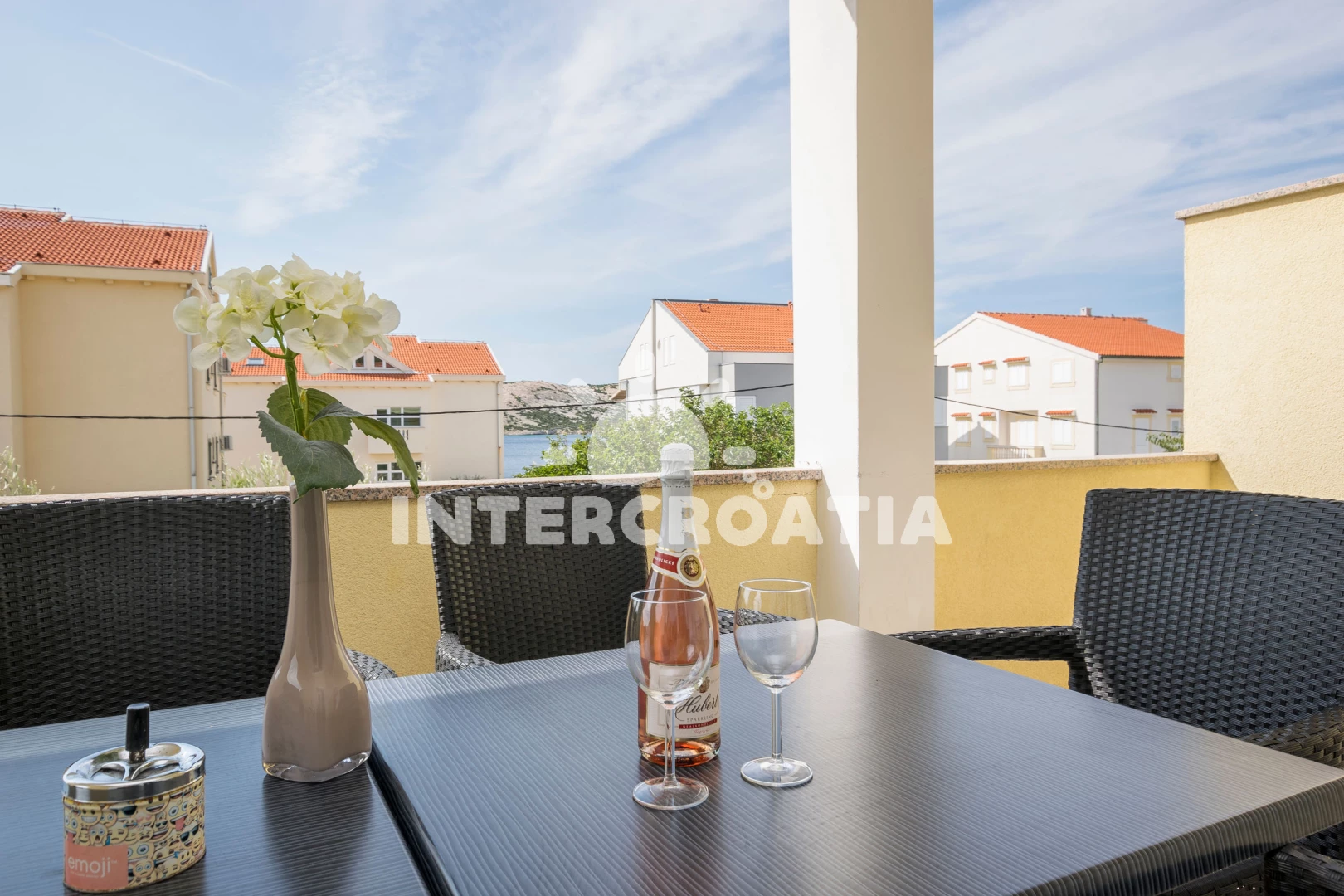Apartmán se nachází 50 m od moře a pláže. Pláž je skalnatá, oblázková, větší kamení a betonové desky. U objektu je k dispozici společná zahrada s posezením a grilem. Parkování je před domem.