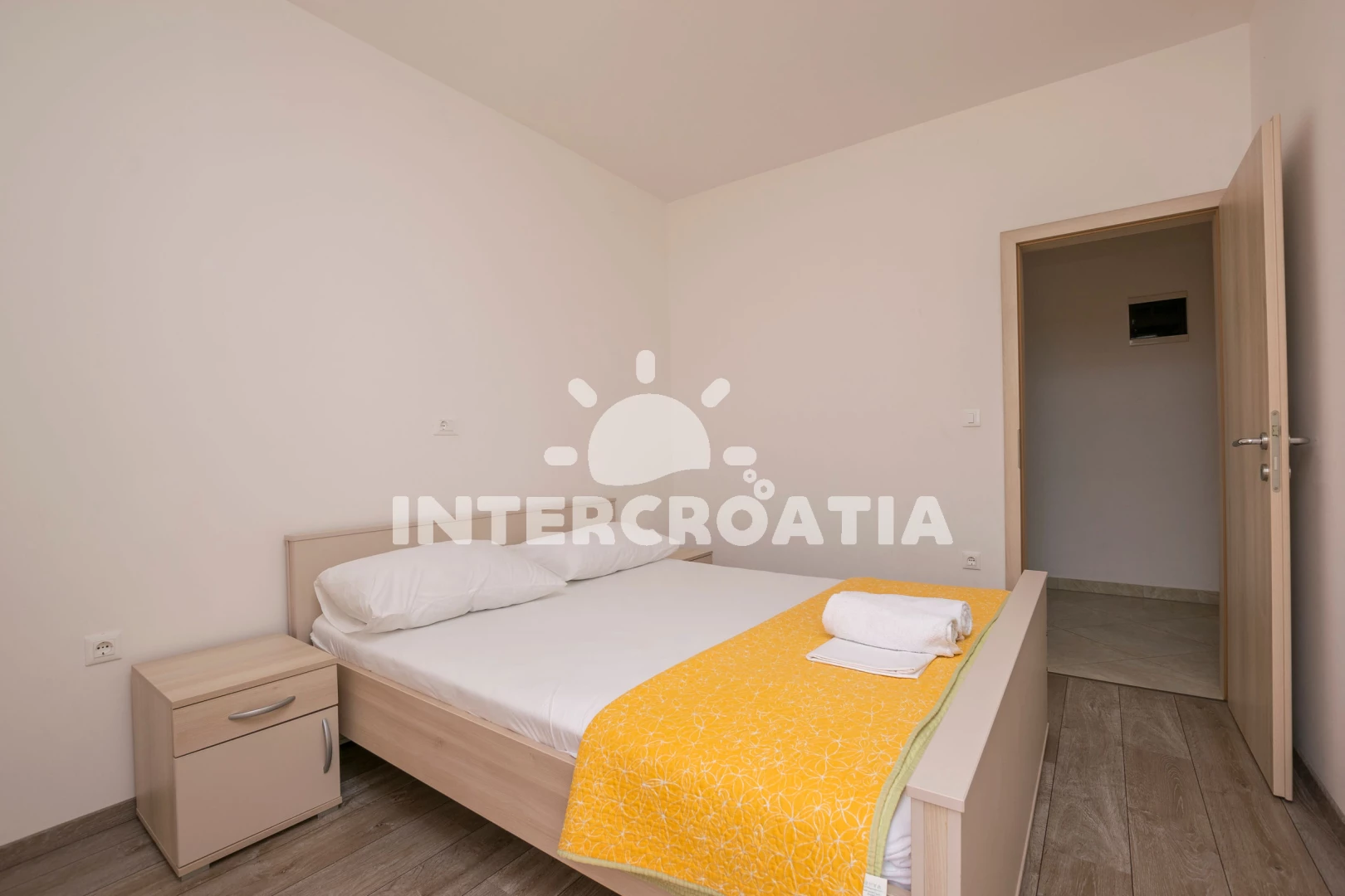 Apartmán (75 m2) s balkonem, a výhledem na moře. Nachází se ve 2. patře objektu. Apartmán má 2 ložnice a je vhodný pro až 4 osoby. Kuchyňská linka je vybavena varnou deskou, rychlovarnou konvicí, nádobím, lednicí, mrazákem. K dispozici televize se satelitním programem. První ložnice s dvoulůžkem. Druhá ložnice s dvoulůžkem. Koupelna se sprchovým koutem, umyvadlem, WC. Hostům je k dispozici parkování u objektu zdarma.