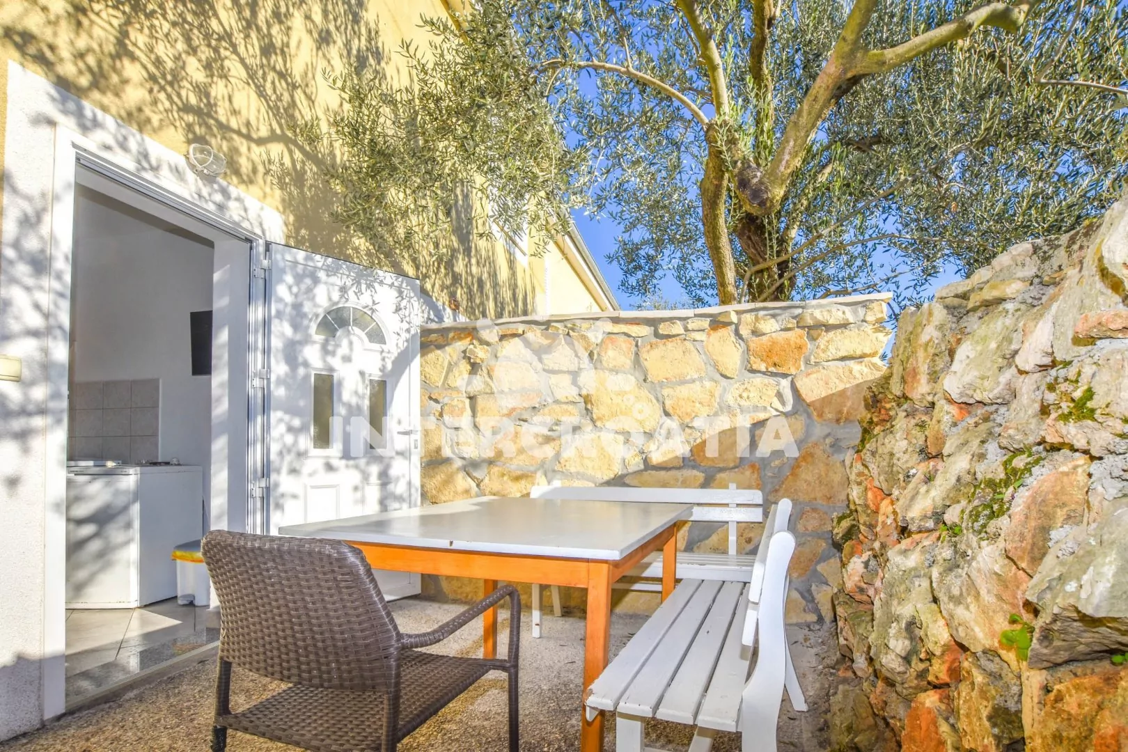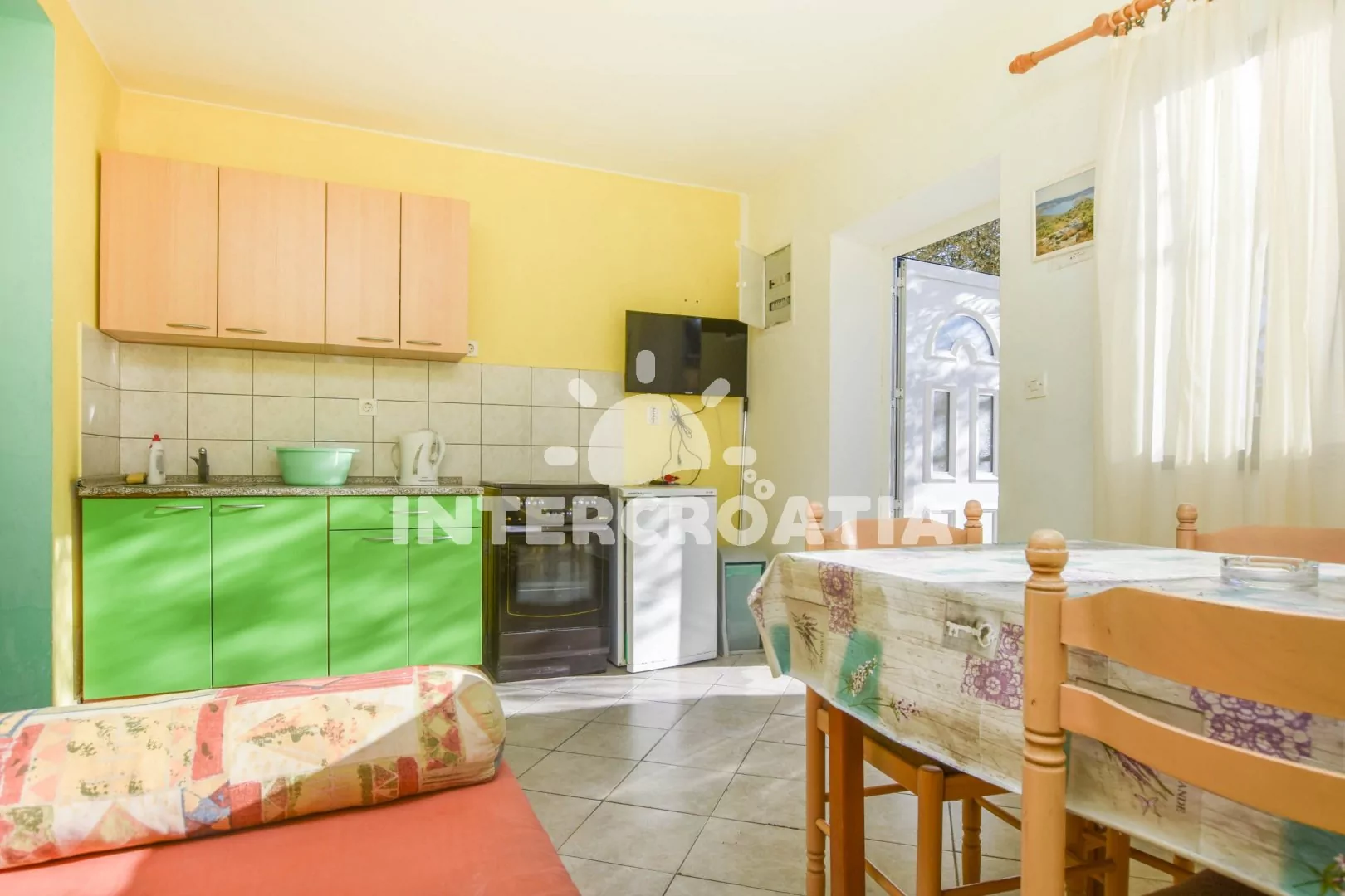 Vzdálenosti: Moře a oblázková-písečná pláž 50 m, bar 200 m, veřejná doprava 500 m, centrum, restaurace, směnárna, supermarket, pošta, ambulance 1 km, lékárna, půjčovna motorových člunů, trajekt 11 km, banka, čerpací stanice, přístav 15 km, letiště 20 km.