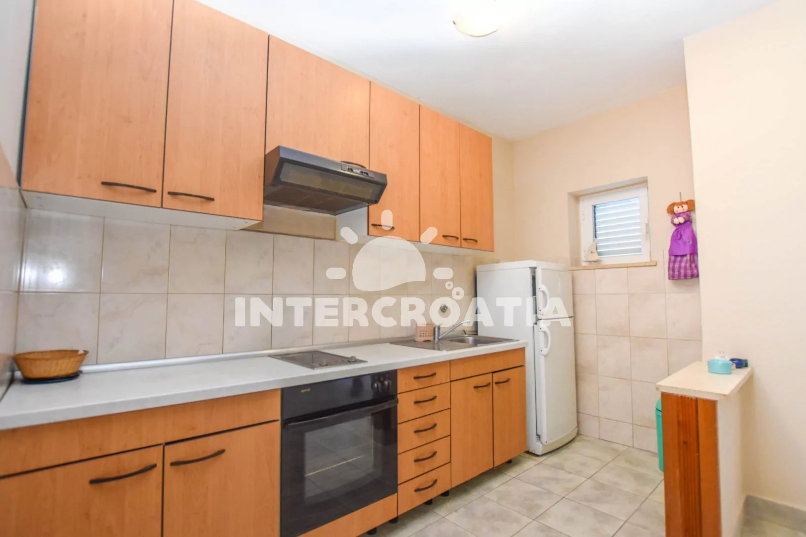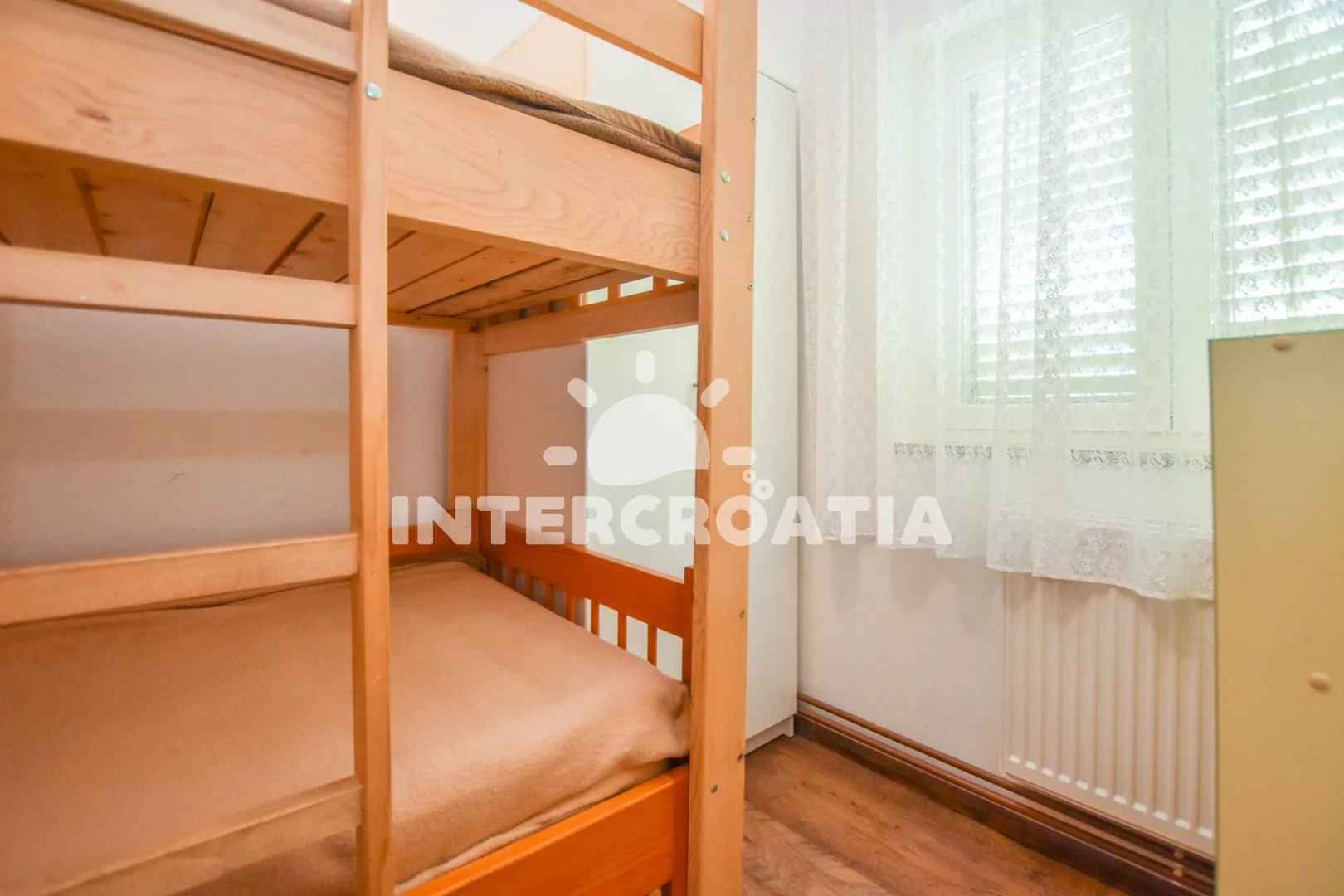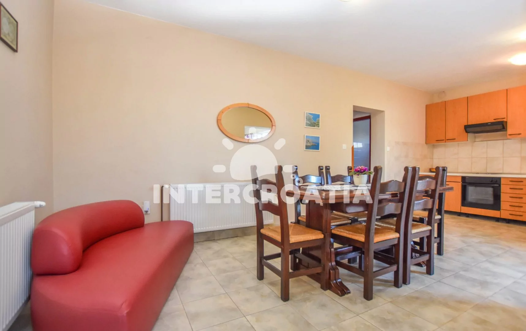Apartmán (100 m2) s terasou a venkovním posezením se nachází v přízemí domu. Apartmán má 3 ložnice a je vhodný pro až 6 sob. Obývací pokoj je spojený s kuchyní. Kuchyňská linka je vybavena…