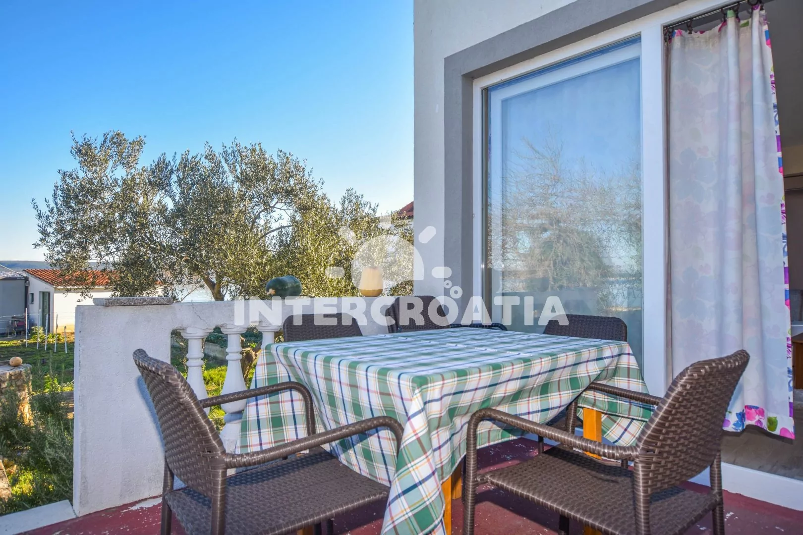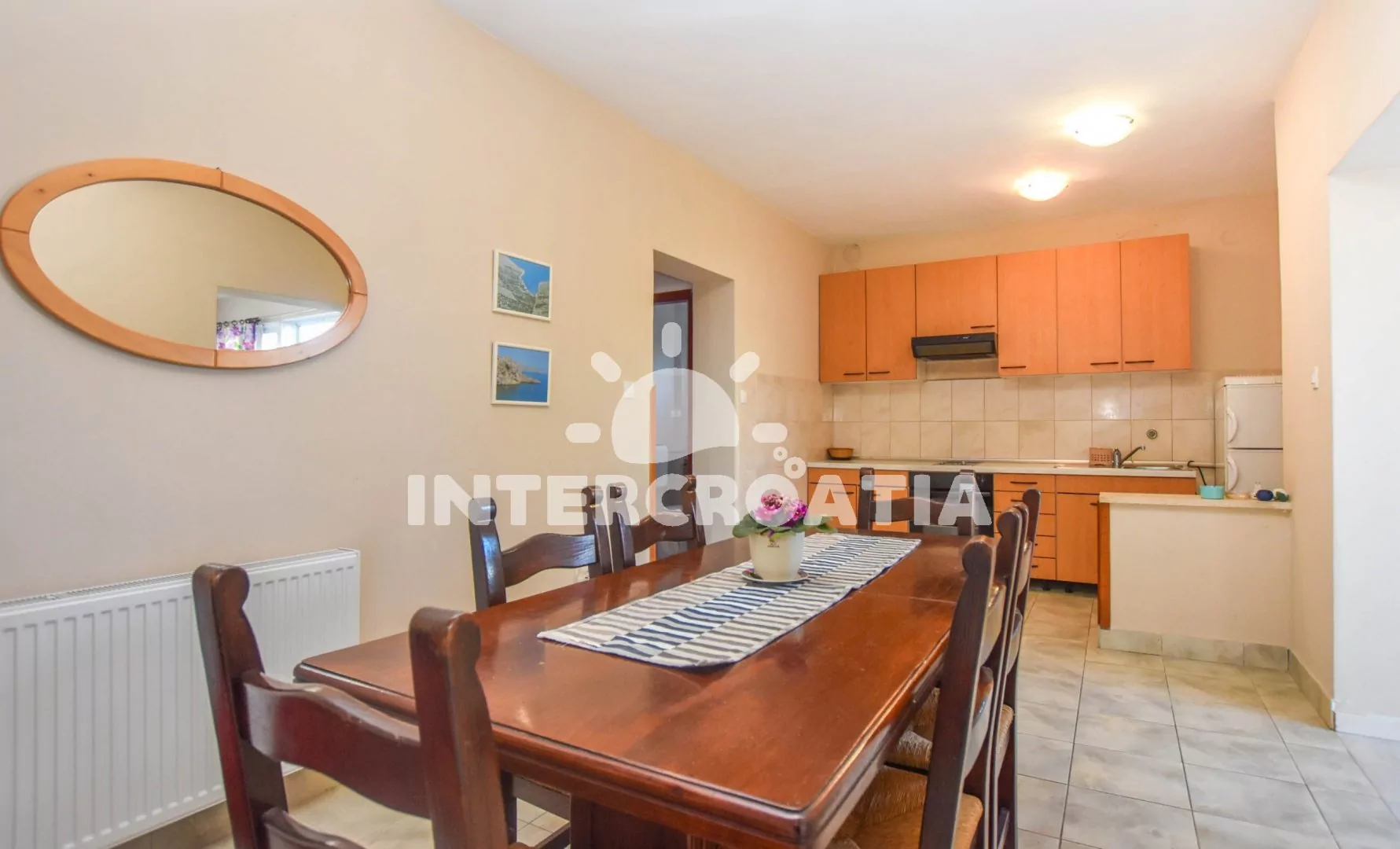 Vzdálenosti: Moře a oblázková-písečná pláž 50 m, bar 200 m, veřejná doprava 500 m, centrum, restaurace, směnárna, supermarket, pošta, ambulance 1 km, lékárna, půjčovna motorových člunů, trajekt 11 km, banka, čerpací stanice, přístav 15 km, letiště 20 km.
