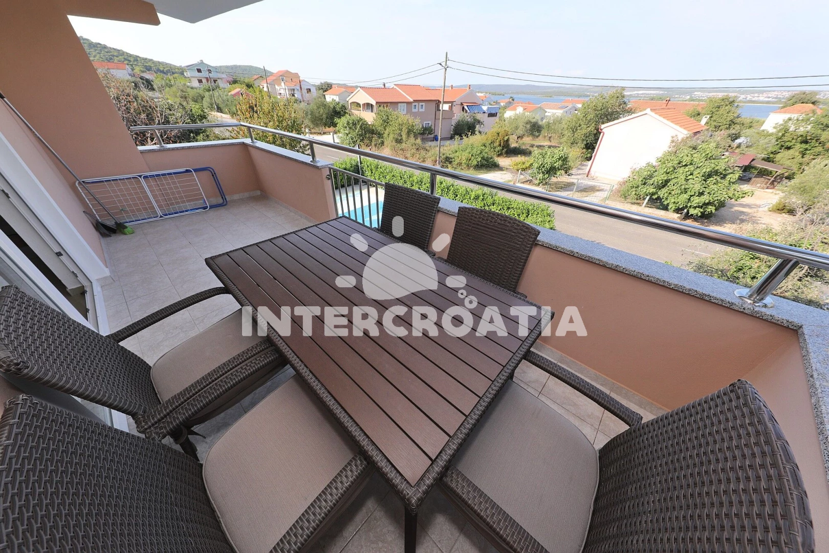 Vzdálenosti: Moře 370 m, pláž 550 m (oblázky), bar 550 m, pošta 2,1 km, veřejná doprava 2,1 km, restaurace 2,1 km, centrum 2,1 km, půjčovna motorových člunů 2,1 km, trajekt (Tkon) 2,1 km, lékárna 2,1 km, supermarket 2,1 km, ambulance 2,1 km, čerpací stanice 5 km, marina 5 km, park Plitvice 15 km, letiště (Zadar) 28,5 km,