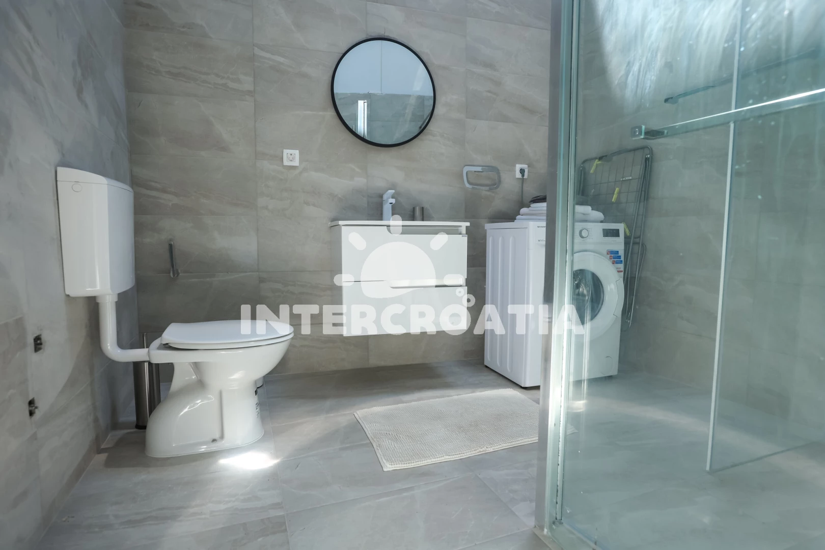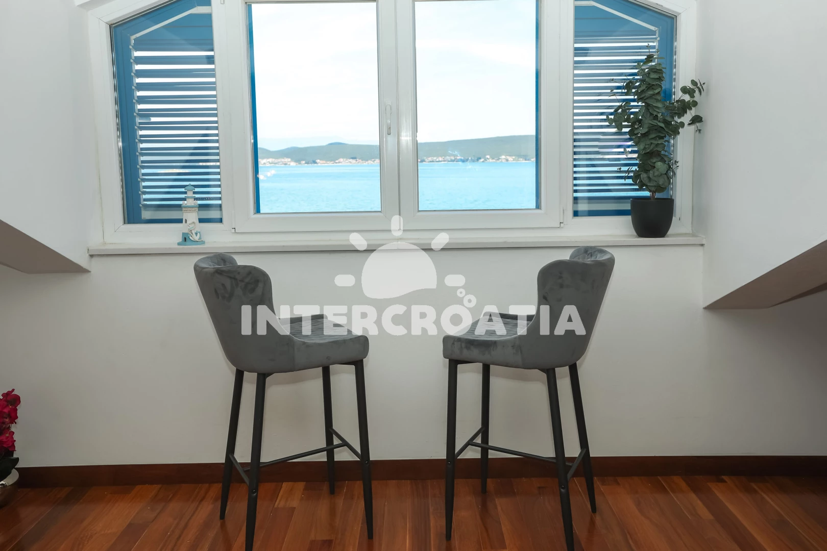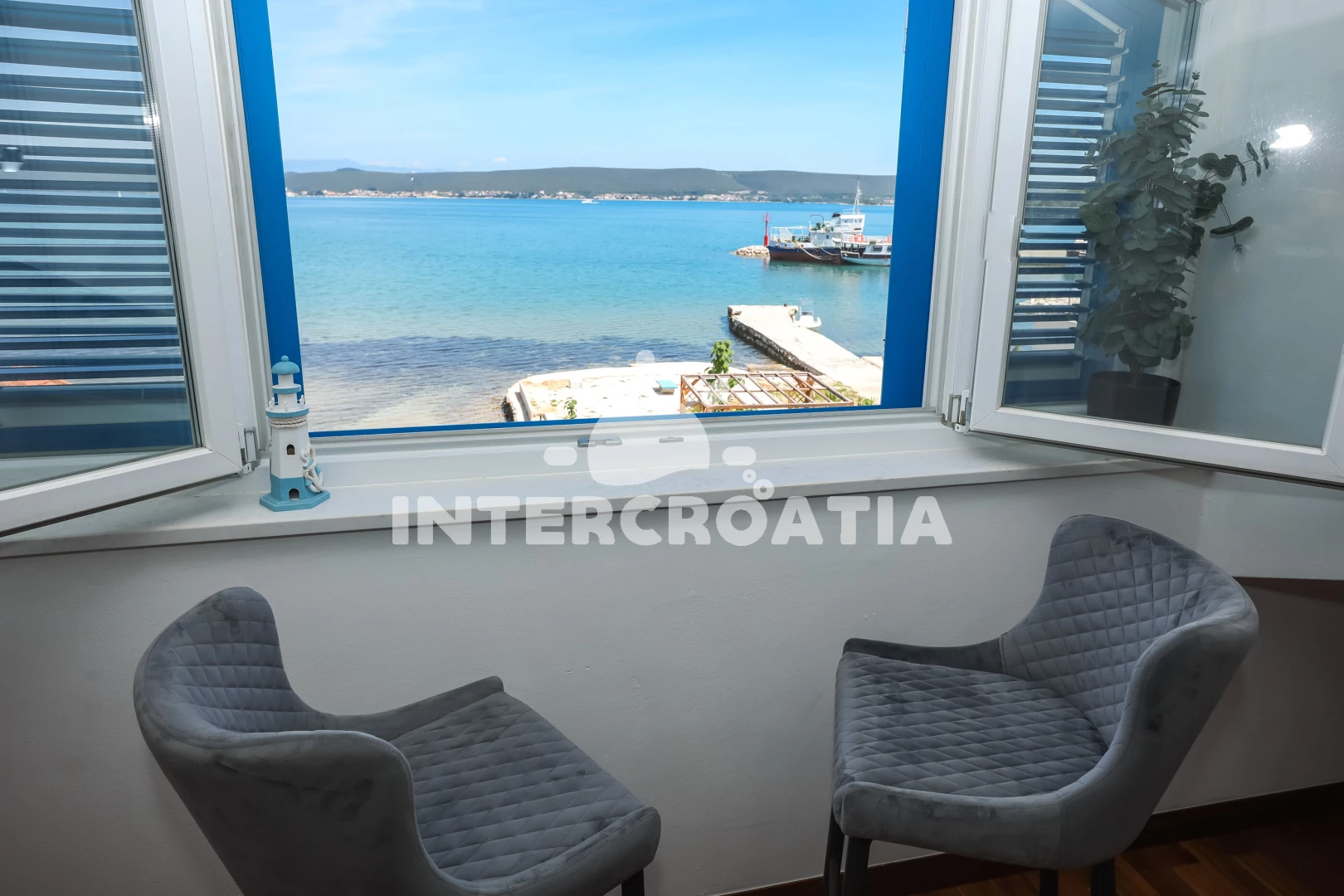 Vzdálenosti: Moře 20 m, pláž 20 m (písčitá a oblázková), supermarket 200 m, centrum 1 km, bar 1,5 km, restaurace 1,5 km, marina 8 km, pošta 8 km, diskotéka 8 km, banka 8 km, ambulance 8 km, lékárna 8 km, trajekt (Tkon) 8 km, veřejná doprava 8 km, čerpací stanice 15 km, park Plitvice 35 km, letiště (Zadar) 35 km,