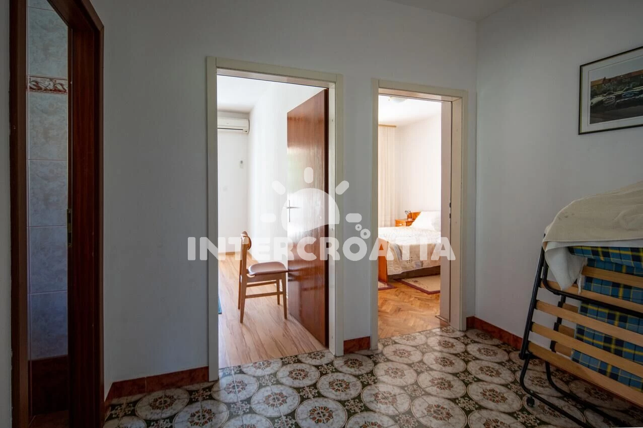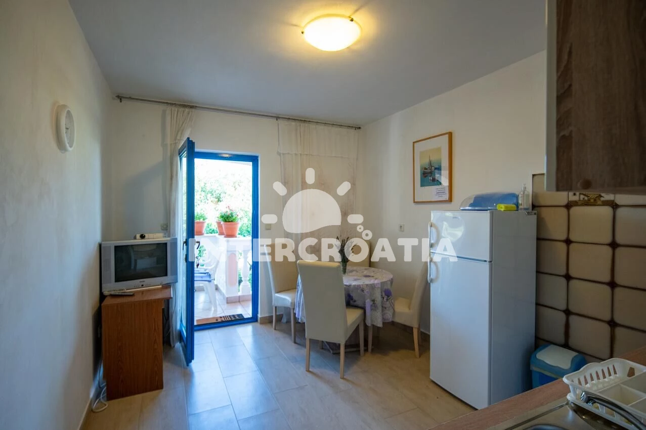 Apartmán se nachází 300 m od moře a pláže. Pláž je skalnatá, oblázková, větší kamení a betonové desky. U objektu je k dispozici společná zahrada s posezením a grilem. Parkování je před domem.