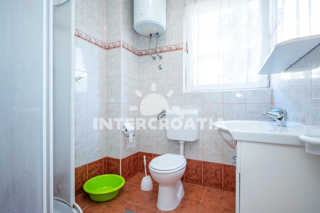 Vzdálenosti: Moře 180 m, pláž 300 m (skalnatá, oblázková, větší kamení a betonové desky), centrum 150 m, bar 300 m, směnárna 300 m, restaurace 300 m, supermarket 350 m, pošta 400 m, trajekt (Tkon) 6 km, lékárna 6 km, ambulance 6 km, marina 6 km, půjčovna motorových člunů 6 km, diskotéka 9 km, banka 9 km, muzeum 9 km, potápění 9 km, čerpací stanice 9 km, park Plitvice 16 km, letiště (Zadar) 38 km,