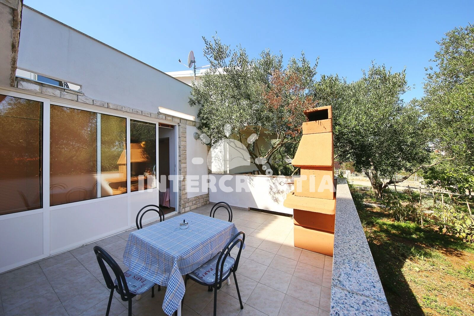 Apartmán se nachází 50 m od moře a pláže. Pláž je oblázková a větší kamení. U objektu je k dispozici společná zahrada s posezením a grilem. Parkování je před domem.