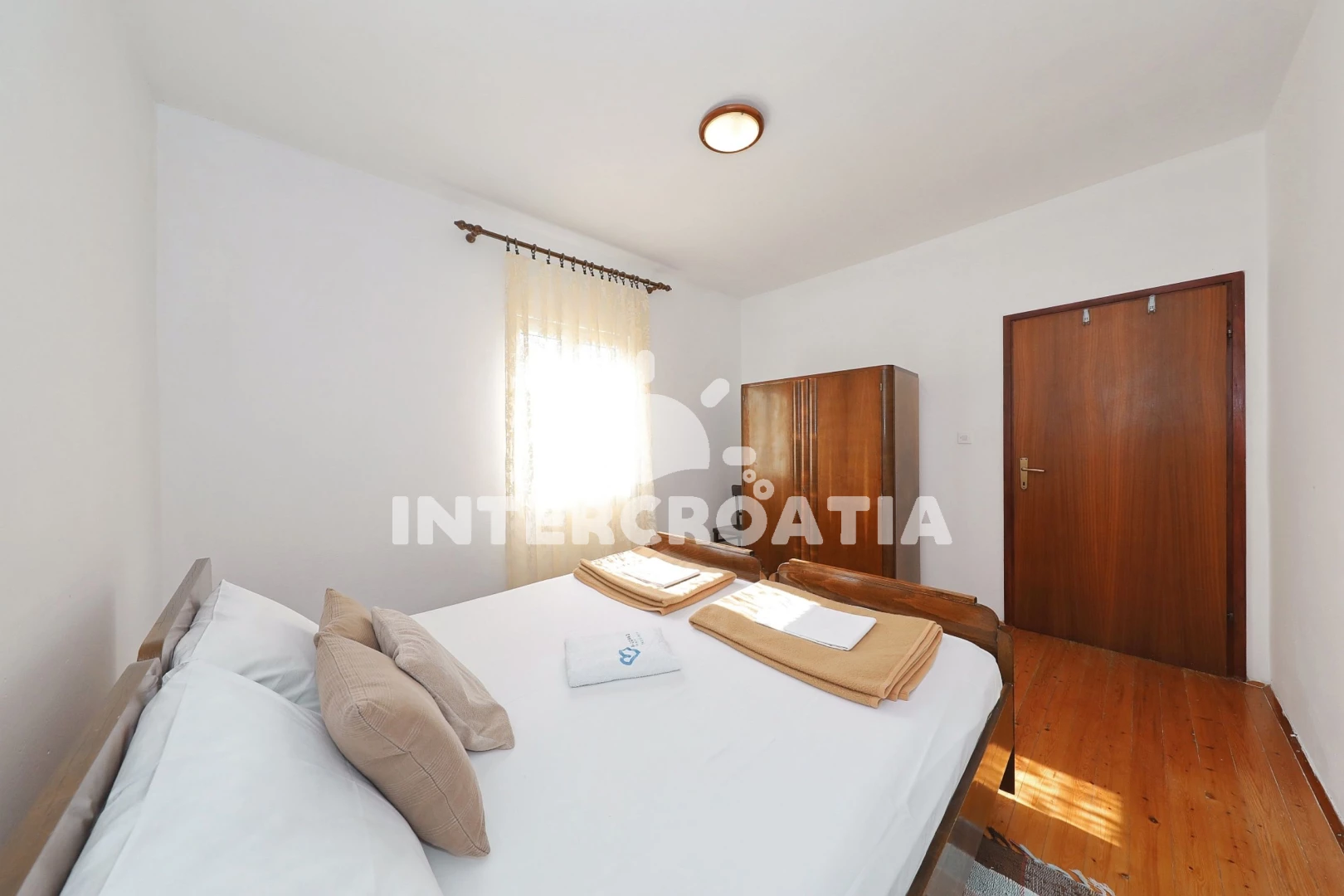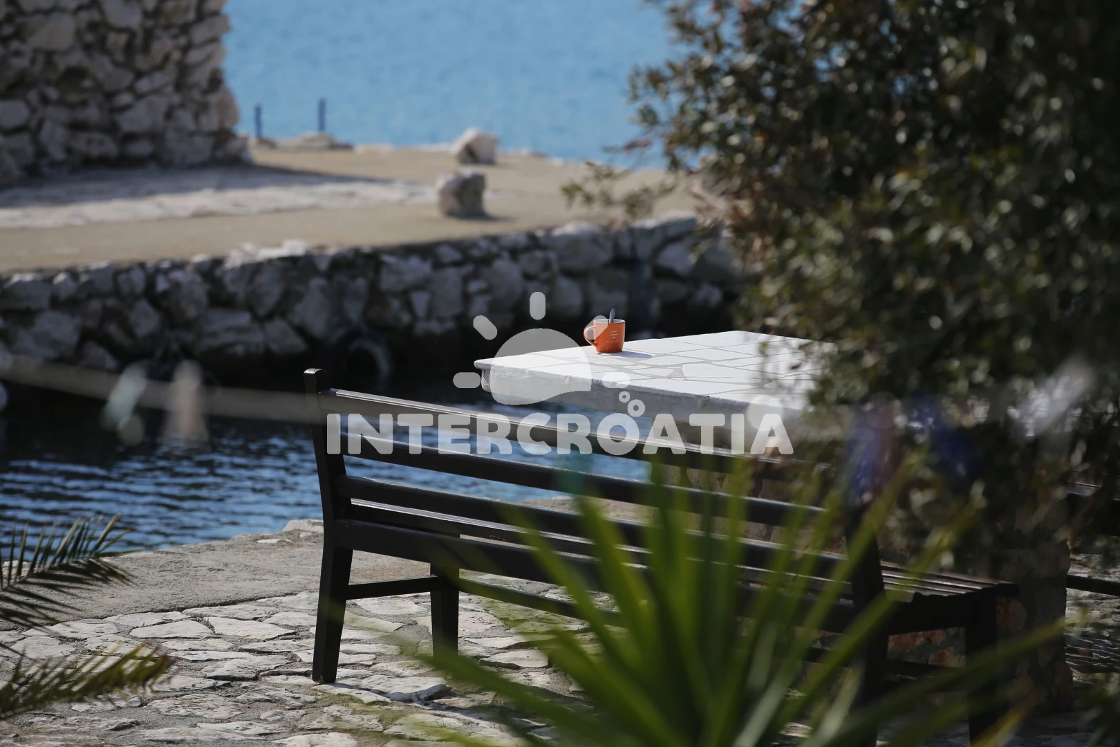 Apartmán se nachází 15 m od moře a pláže. Pláž je kamenné a betonové desky. U objektu je k dispozici společná zahrada s posezením a grilem. Parkování je 150m - 300 m od domu.