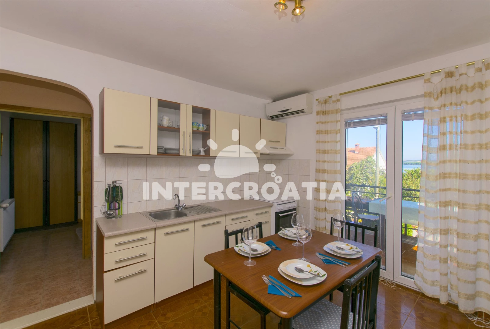 Vzdálenosti: Moře 20 m, pláž 50 m (písčitá a oblázková), půjčovna motorových člunů 10 m, půjčovna kol 10 m, kotviště pro čluny 30 m, veřejná doprava 300 m, supermarket 350 m, marina 350 m, bar 350 m, trajekt (Tkon) 400 m, lékárna 400 m, ambulance 400 m, směnárna 400 m, pošta 400 m, restaurace 400 m, muzeum 400 m, centrum 500 m, potápění 2 km, banka 2 km, tenisové kurty 3 km, čerpací stanice 3 km, diskotéka 20 km, letiště (Zadar) 30,0 km,