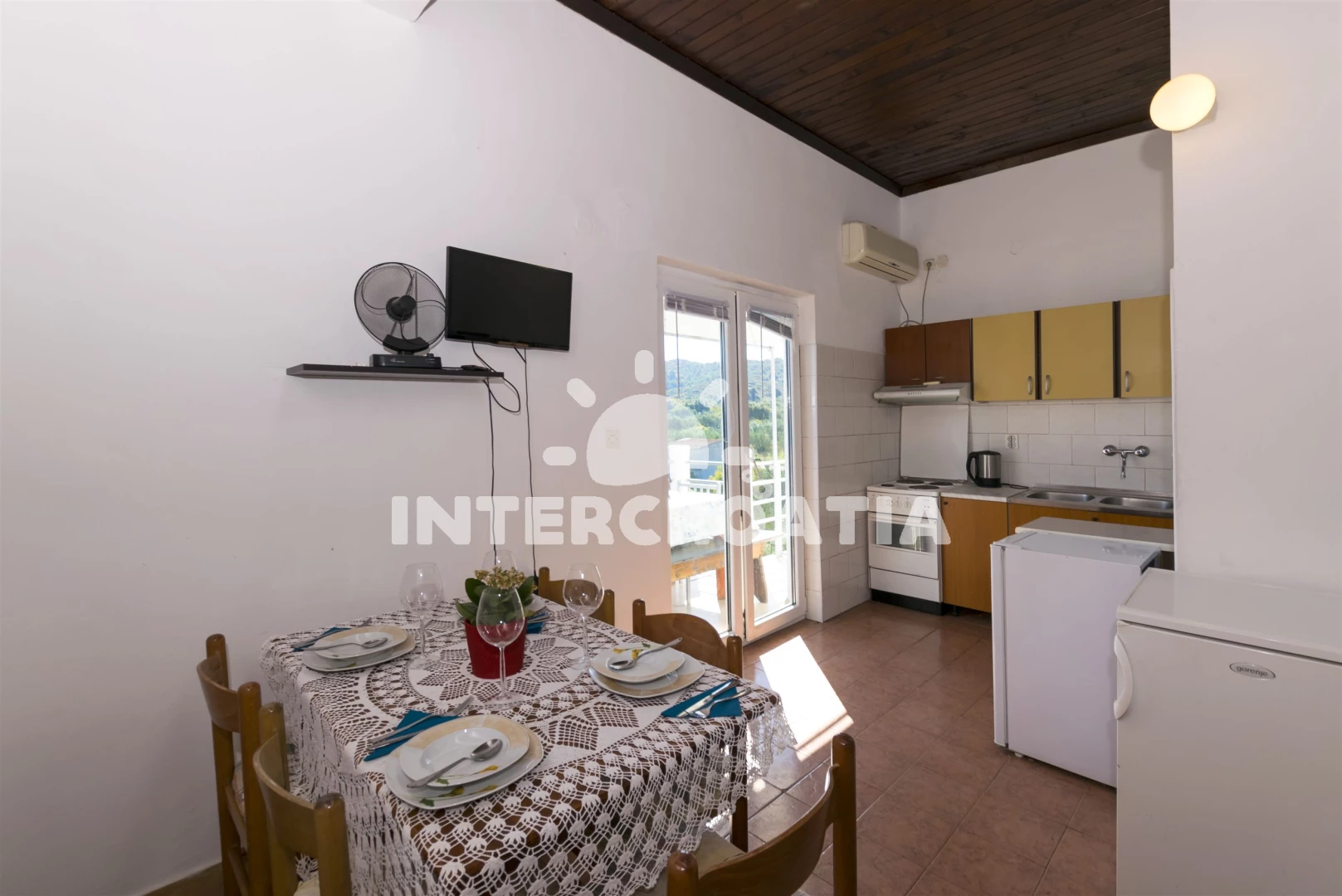 Apartmán (50 m2) s terasou, s balkonem, a výhledem na moře. Nachází se ve 2. patře objektu. Apartmán má 2 ložnice a je vhodný pro až 5 osob. Kuchyňská linka je vybavena varnou deskou, kávovarem, troubou, mikrovlnnou troubou, rychlovarnou konvicí, nádobím, lednicí, mrazákem. K dispozici televize se satelitním programem, žehlička. První ložnice s dvoulůžkem. Druhá ložnice s dvoulůžkem, přistýlkou. Koupelna se sprchovým koutem, umyvadlem, fénem a WC.